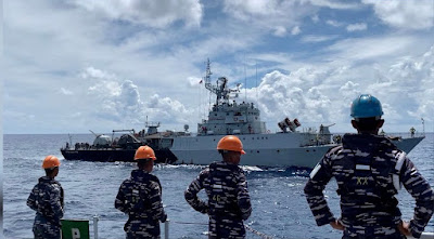 Tim patroli melalui pengeras suara memerintahkan kedua kapal tersebut untuk merapat ke KRI.