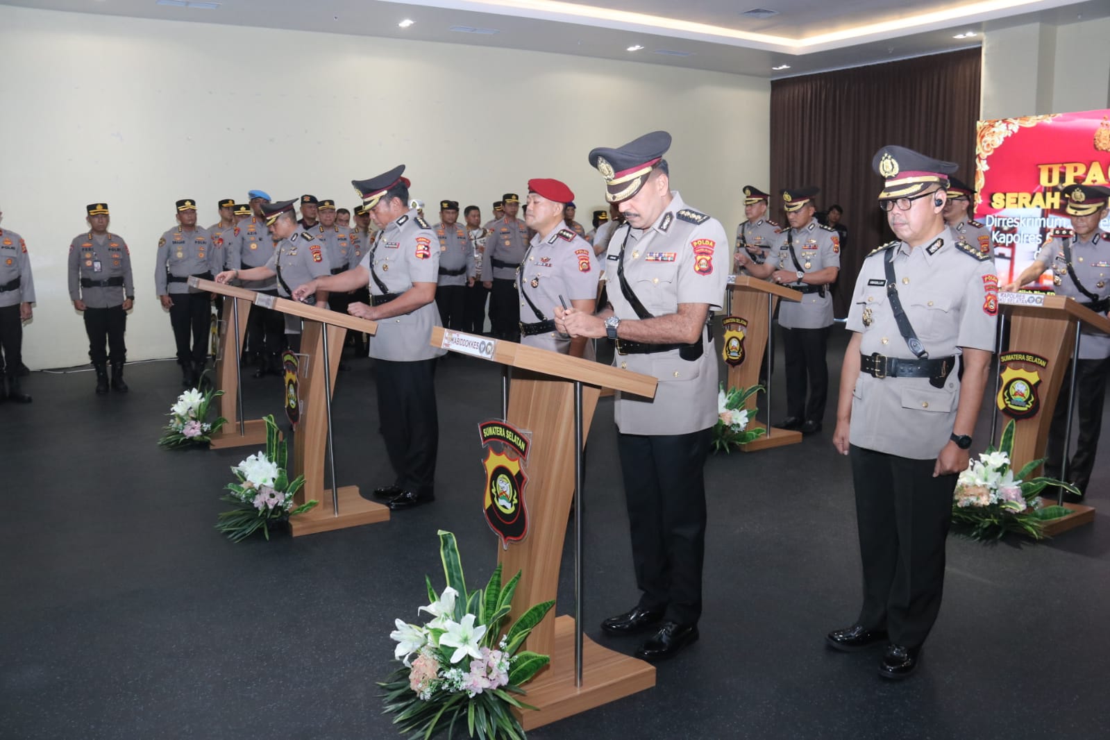 Liputanabn.com | Palembang ,– Kepala Kepolisian Daerah (Kapolda) Sumatera Selatan (Sumsel)Irjen. Pol Andi Rian R Djajadi SIK, MH memimpin serah terima jabatan (Sertijab) pejabat utama Polda Sumsel dan Kapolres jajaran Polda Sumsel di Lounge lantai 7 Gedung utama Presisi Mapolda Sumsel Jalan Jenderal Sudirman Palembang Jumat (4/7/2025).