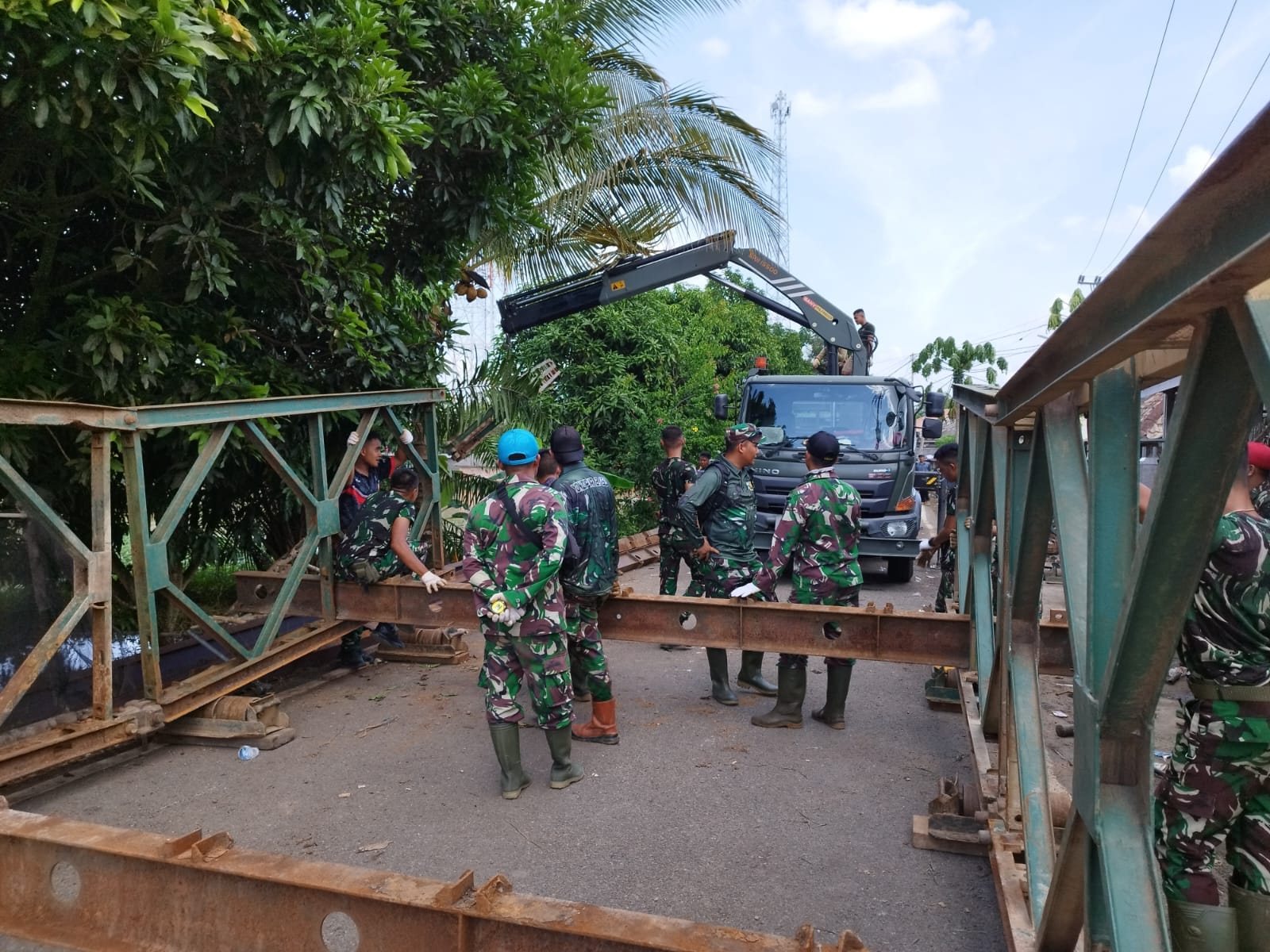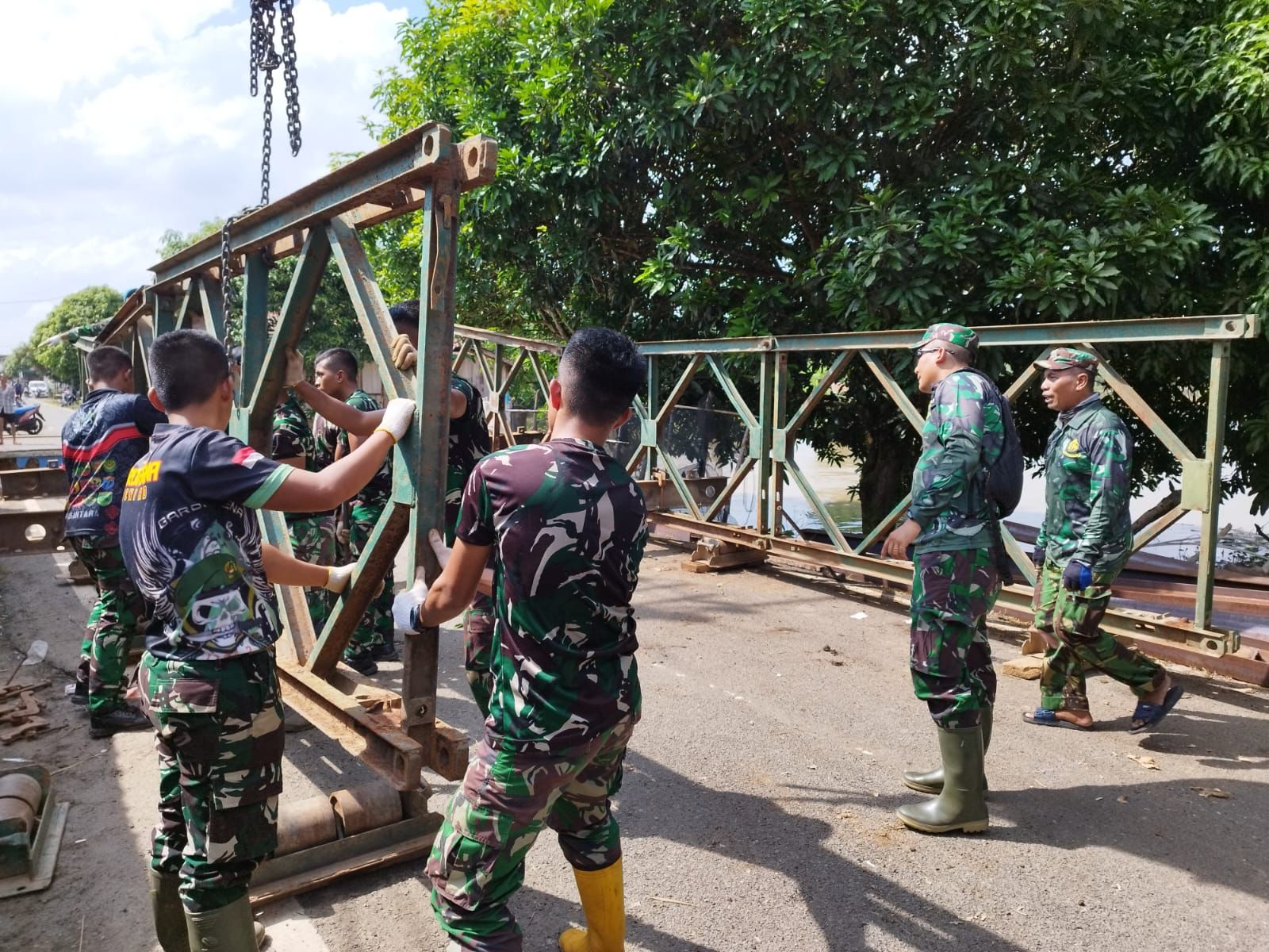 Senada disampaikan Ka Korum Yonzipur 2/SG, Kapten Czi Yudha Prawira terangkan bahwa pemasangan jembatan Bailey dilakukan pada hari Minggu (21/01/2024).