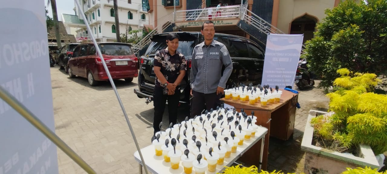 Jumat Berbagi 200 Gelas Es Jagung Dibagikan Aipda M. Aliudin Di Halaman Masjid Reira Kelurahan 2 Ilir Kecamatan Ilir Timur II Kota Palembang.