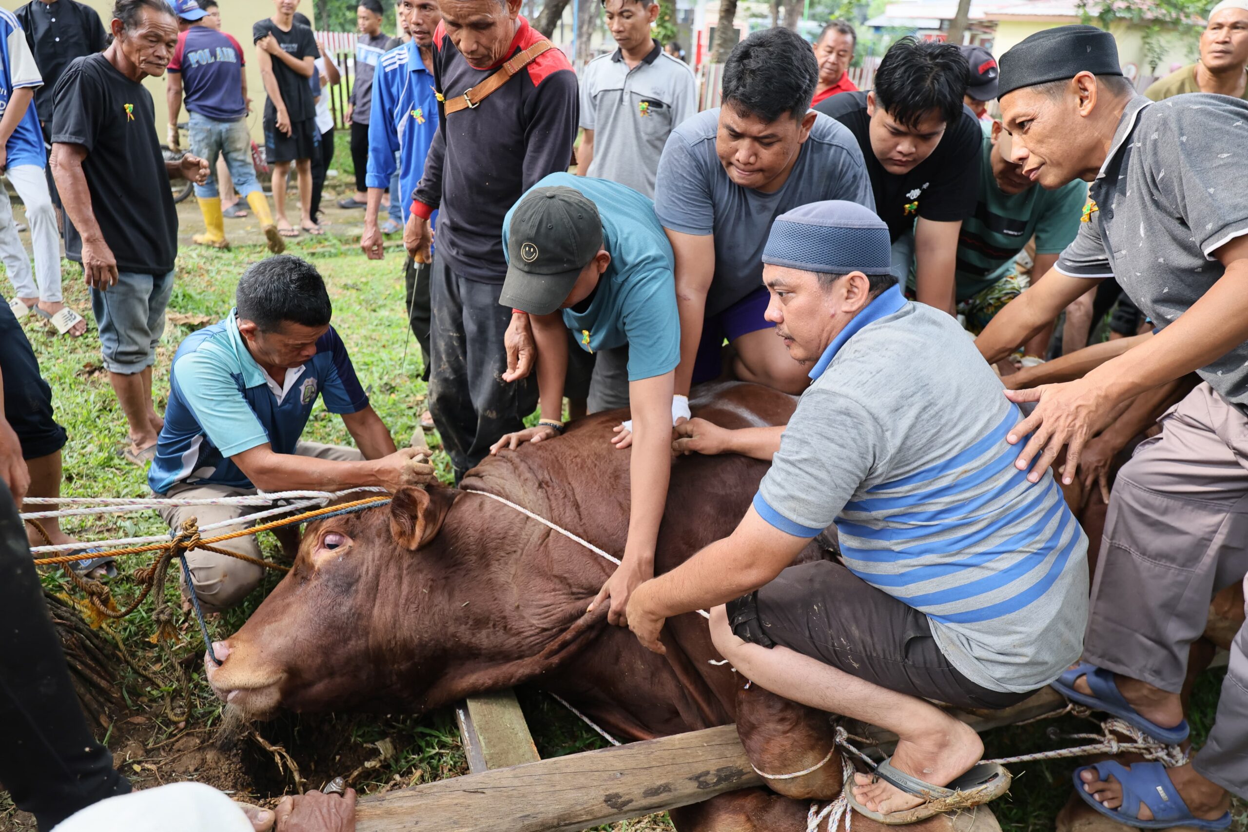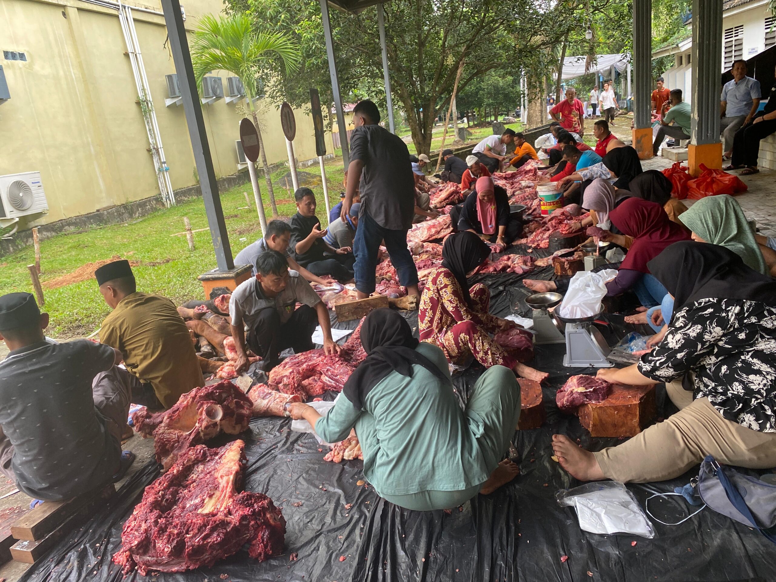 Daging hasil kurban dibagikan kepada ratusan bahkan ribuan orang masyarakat yang berada di sekitar masjid binaan Kepolisian diantaranya