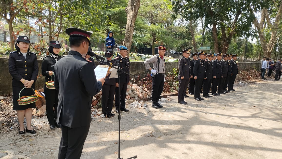Dalam melaksanakan upacara pemakaman Selaku Inspektur Upacara, Wakapolres Banyuasin Kompol Adriansyah,SH SIK , yang dihadiri Kabag SDM Kompol Yuzar Heriz,SIP ,MSi
