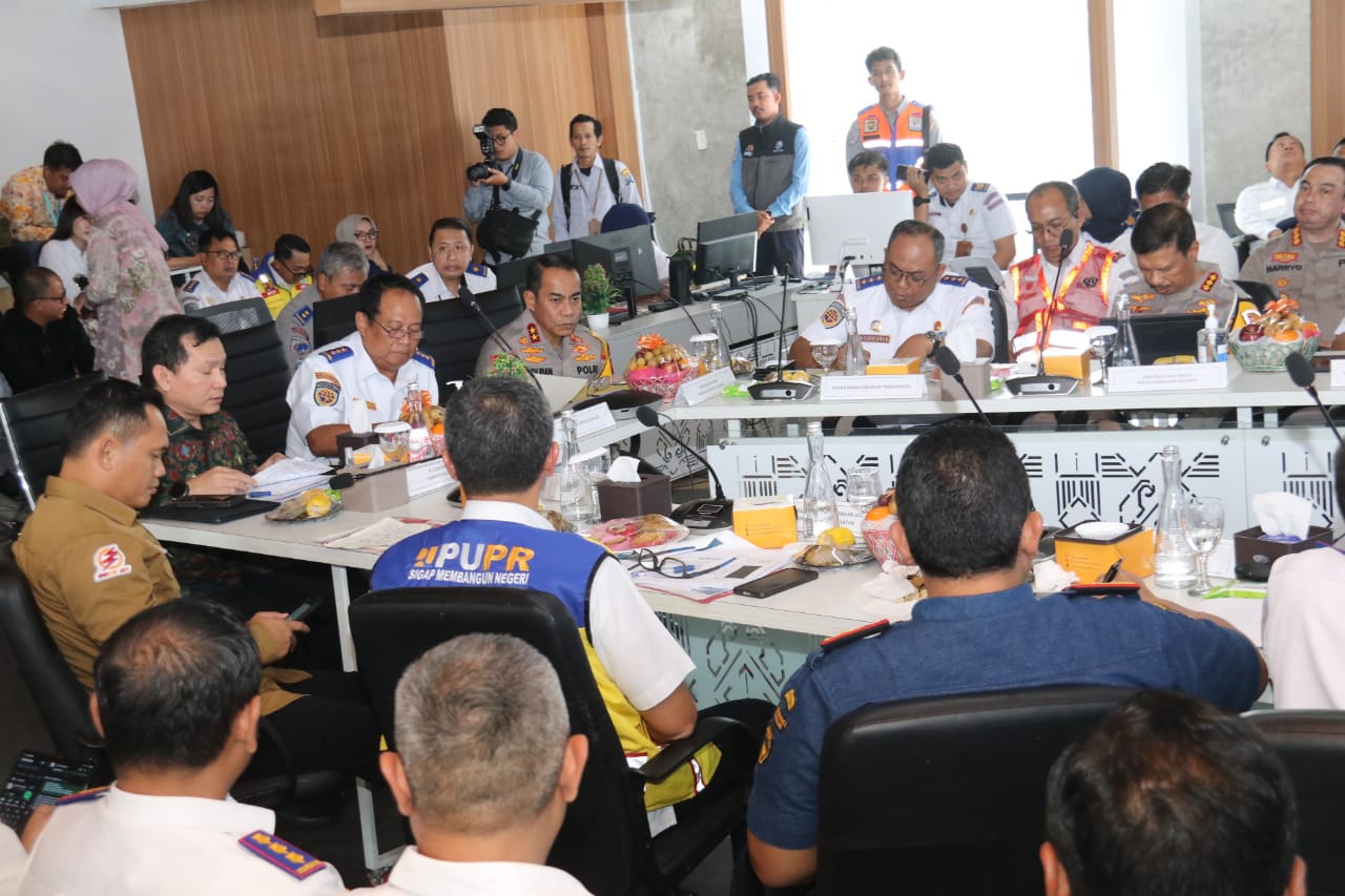 Liputanabn.com | Palembang, – Kapolda Sumsel Irjen Pol Andi Rian R Djajadi SIK,MH bersama Penjabat (Pj) Gubernur Sumatera Selatan (Sumsel) Elen Setiadi, S.H., M.S.E mengikuti Rapat Evaluasi Natal Tahun 2024 dan Tahun Baru 2025 serta Koordinasi dan Antisipasi Isu Strategis Transportasi di Provinsi (Sumsel) dalam rangka Persiapan Angkutan Lebaran Tahun 2025 bertempat di Ruang Command Center BPTD Kelas II Sumatera Selatan Terminal Tipe A Alang Alang Lebar Palembang, Kamis (2/1/2025).