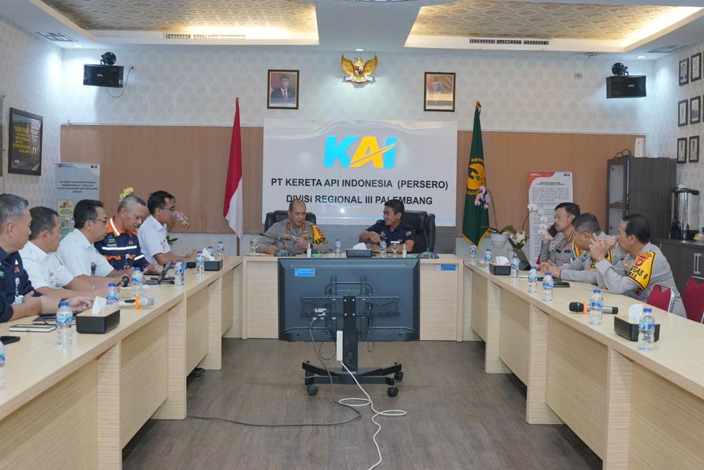 Kapolda Sumsel Berserta Jajaran Mendatangi Kantor PT KAI Persero Divre III Terkait Kemacetan Akibat Kereta Api Babaranjang di Kabupaten Muara Enim Sumsel