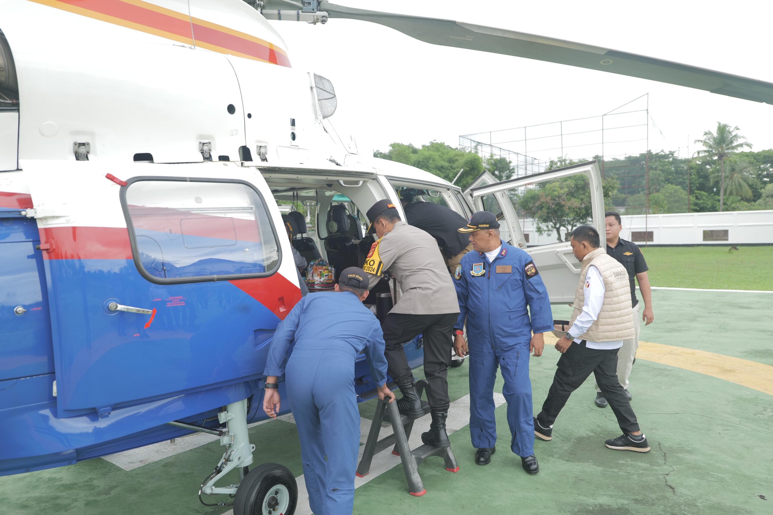 Pantauan lewat udara ini juga diikuti, Ketua KPU Sumsel Andika Pranata Jaya S.Sos., M.Si., dan Ketua Bawaslu Sumsel Kurniawan, S.Pd.