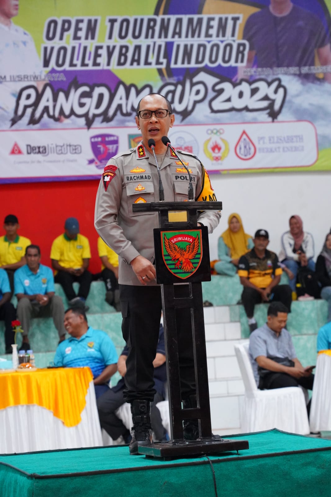 Dalam sambutan upacara pembukaan Kapolda Sumsel Irjen pol A.Rachmad Wibowo SIK mengatakan, olahraga voli merupakan olahraga yang telah mengharumkan nama bangsa Indonesia di kancah dunia.