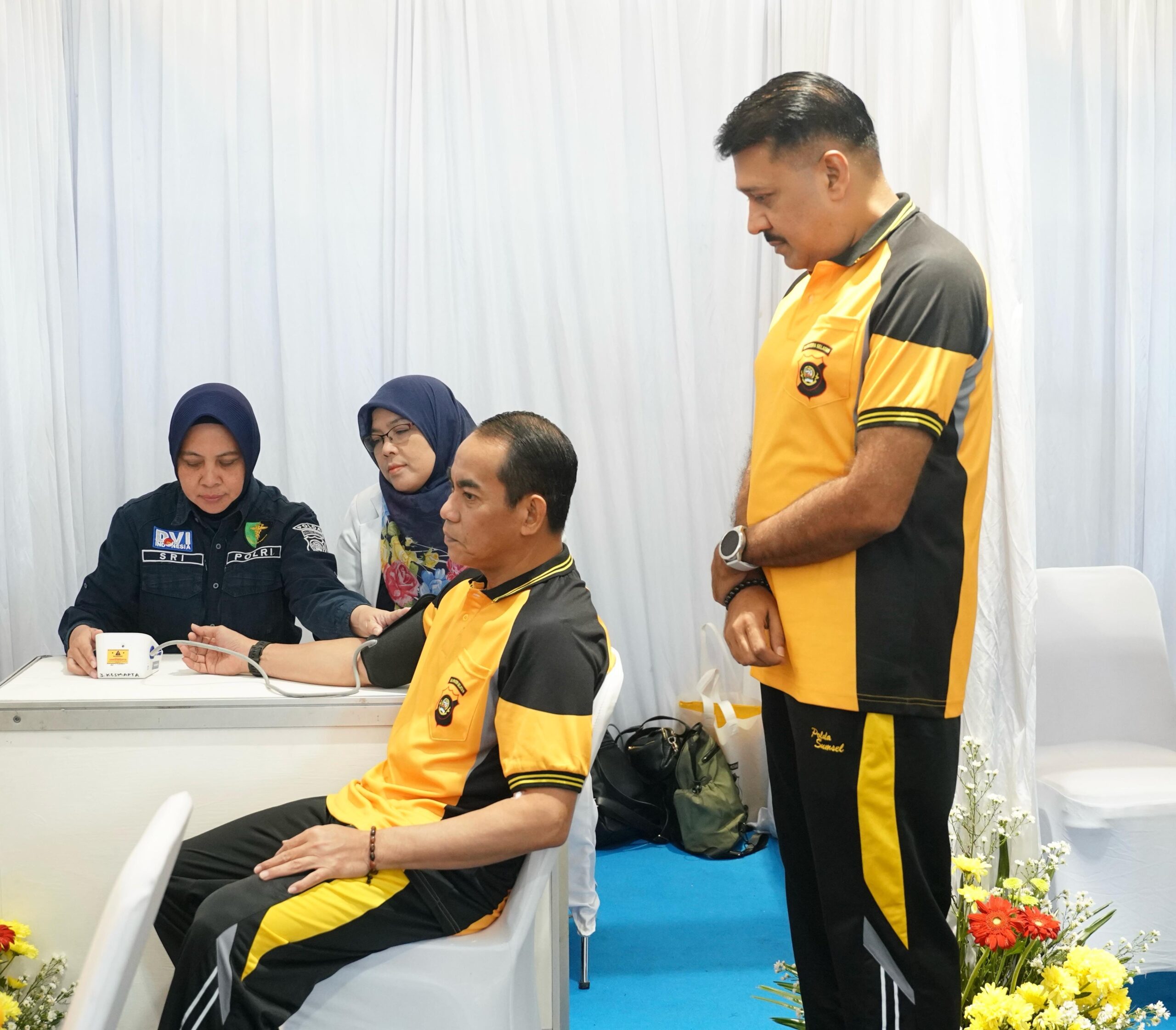 ” Kapolda Sumsel bersama sejumlah pejabat Polda Sumsel lainnya mengikuti pemeriksaan kesehatan (Rikkes) berkala T. A. 2025, meliputi pemeriksaan cek vital sign, tensi dan nadi,THT,gigi,