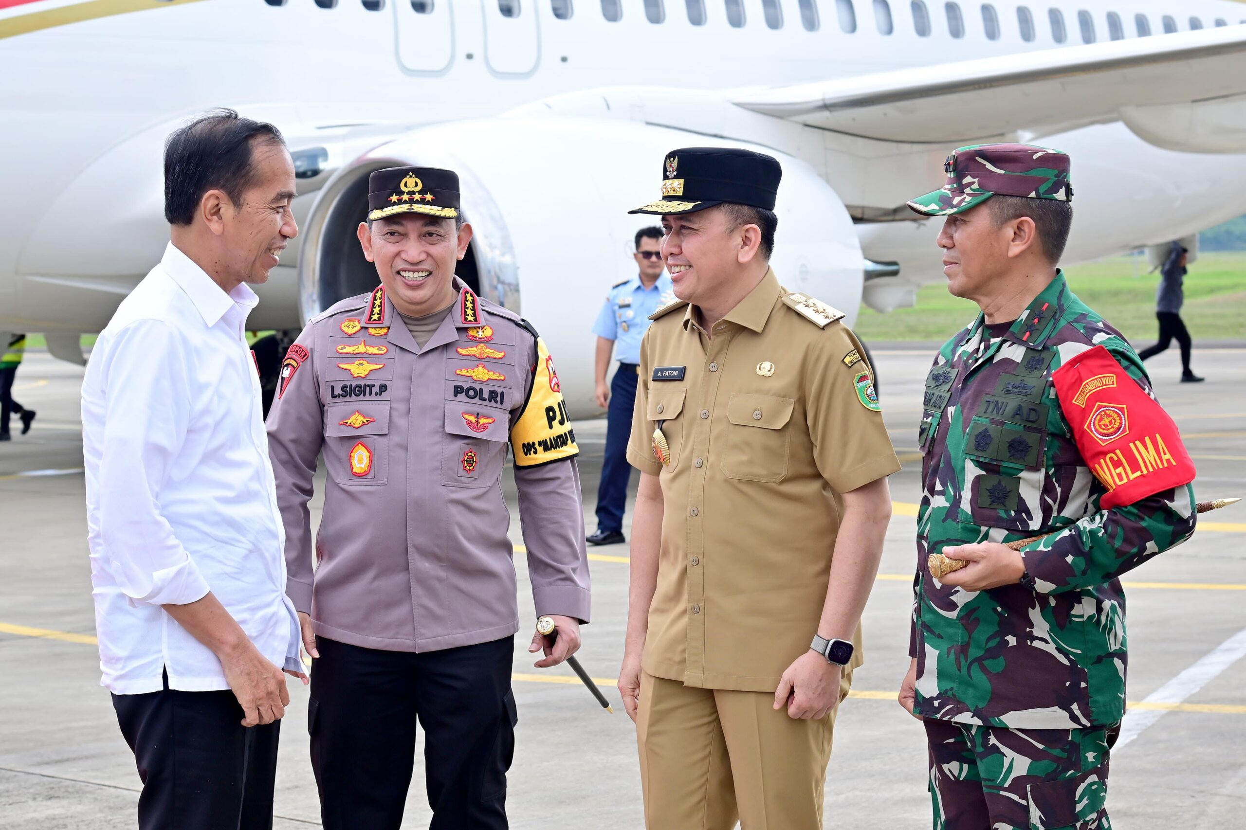 Liputanabn.com | PALEMBANG – Kapolda Sumsel Irjen Pol A.Rachmad Wibowo,SIK , bersama Forkompimda Provinsi Sumsel menyambut Kedatangan Presiden Joko Widodo, dalam rangka kunjungan kerja kekota Palembang, Sumatera Selatan, Jumat, usai melakukan kegiatan di Ibu Kota Nusantara (IKN), Kalimantan Timur.