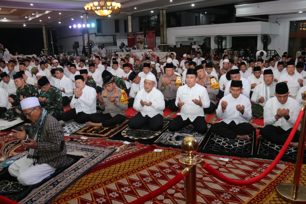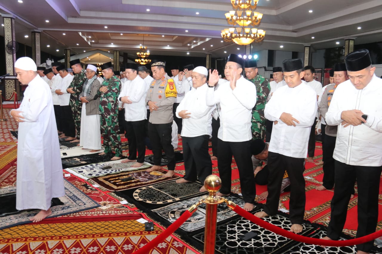 Liputanabn.com | Palembang – Kapolda Sumsel Irjen Pol Andi Rian R Djajadi , SIK, MH bersama Forum Koordinasi Pimpinan Daerah (Forkopimda) Provinsi Sumsel, menggelar dzikir dan doa bersama di Griya Agung jalan Demang lebar daun Palembang sebelum pemantauan malam pergantian tahun baru 2025 dan Vicon bersama Kapolri bertempat di Bundaran Air Mancur Palembang Selasa (31/12/2024).
