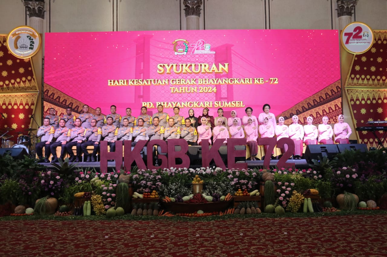 Kapolda Sumsel sekaligus Pembina Bhayangkari Sumsel Irjen Pol Andi Rian R Djajadi SIK, MH mengatakan diawal sambutan Selaku Pembina Bayangkari Daerah Sumatera Selatan Saya beserta staf dan jajaran Mengucapkan selamat ulang tahun Kepada seluruh anggota Bayangkari Daerah Sumatera Selatan Semoga dengan usia ke-72 tahun ini Bayangkari dengan kemandiriannya Dan kreatifitas dapat terus mendukung Dan membantu tugas Polri Dalam membangun negeri Menuju Indonesia Emas ,Peringatan Hari Kesatuan gerak Bayangkari ke-72 Pada tahun ini Mengambil tema Bayangkari mendukung Polri Presisi Untuk membangun negeri Menuju Indonesia Emas Dengan tema ini, tentunya Memiliki makna Bahwa sebagai istri anggota Polri Diharapkan dapat memberikan dukungan Dan motivasi kepada suami Selaku anggota Polri Untuk melaksanakan tugas Mewujudkan Polri yang presisi Guna mendukung pembangunan negeri Menuju Indonesia Emas ungkap Alumni Akpol 91