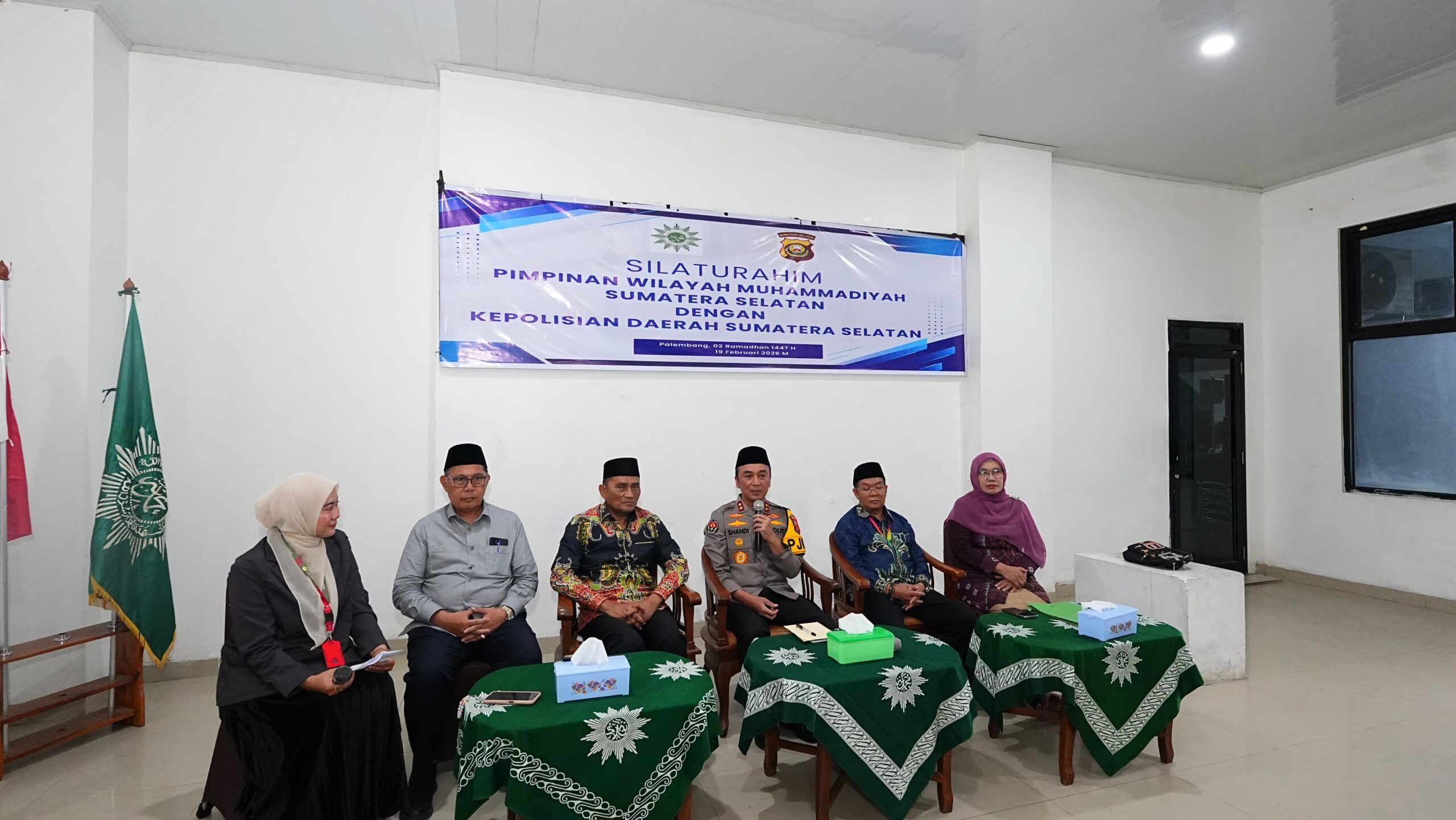 Pada Kamis (19/2/2026), Irjen Pol Dr. Sandi Nugroho, S.I.K., M.Si., melaksanakan lawatan kerja ke Kantor Pimpinan Wilayah Muhammadiyah Sumatera Selatan di Kompleks Universitas Muhammadiyah Palembang. Ketua PW Muhammadiyah Sumsel H. Ridwan Hayatuddin, S.H., M.H., bersama jajaran pengurus pleno menyambut langsung kedatangan rombongan Pejabat Utama Polda Sumsel.