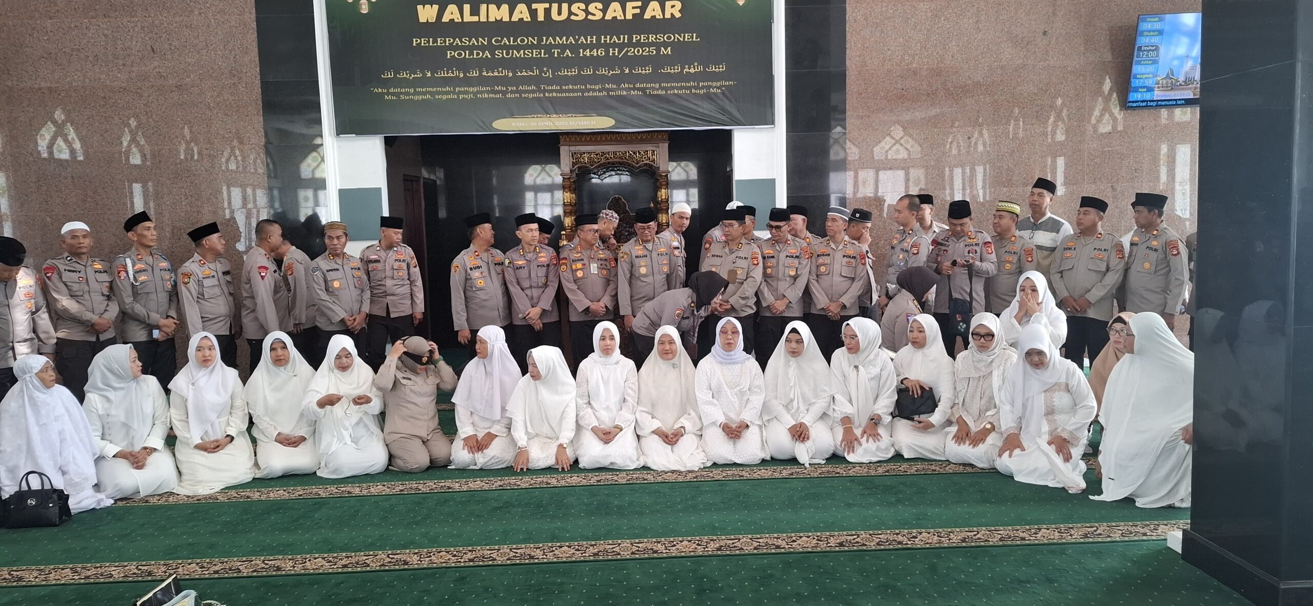 Liputanabn.com | Palembang, – Kapolda Sums Irjen Pol Andi Rian Djajadi diwakili Karo SDM Polda Sumsel Kombes Pol Sudrajad Hariwibowo SIK MSi melepas 44 personel di jajarannya yang akan melaksanakan ibadah haji ke Tanah Suci pada 1446 Hijriah/2025 di Masjid Assa’adah Polda Sumsel di Palembang Rabu 30 April 2025.