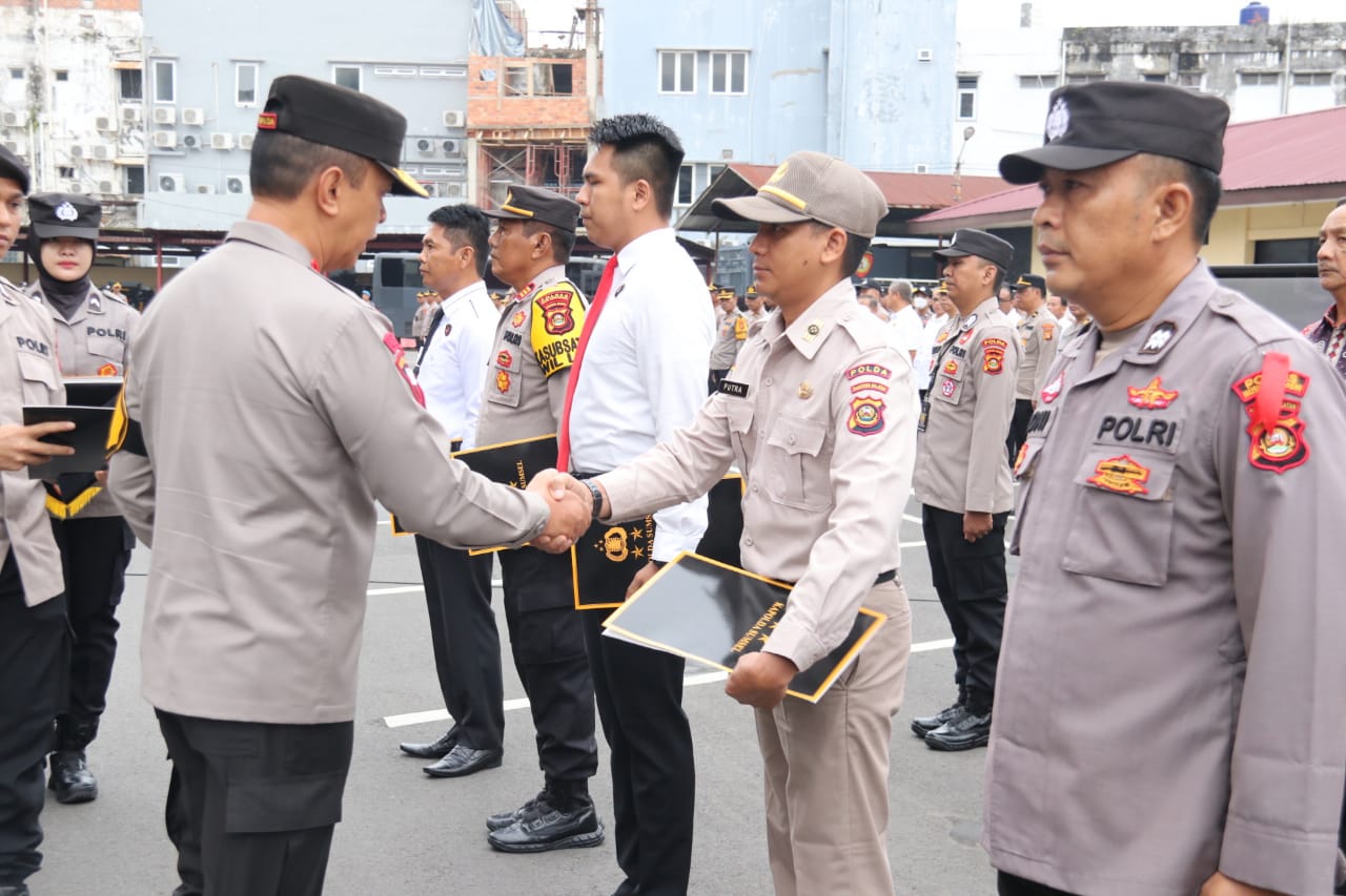 “Kita berikan Piagam penghargaan kepada personel ini, atas prestasi yang mereka lakukan hingga pengungkapan kasus yang dilakukan,” ujarnya.