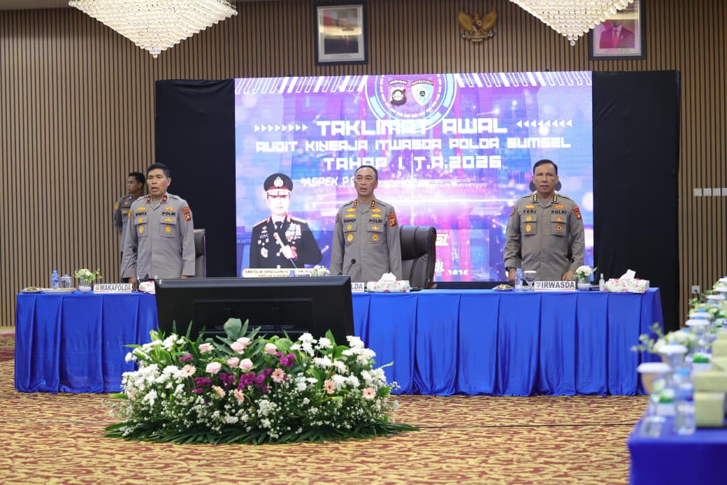 Komitmen tersebut ditegaskan langsung oleh Kapolda Sumsel Sandi Nugroho saat membuka Taklimat Awal Audit Kinerja Itwasda Polda Sumsel Tahap I Tahun Anggaran 2026 di Auditorium Gedung Presisi Polda Sumsel, Palembang, Rabu (8/4/2026).