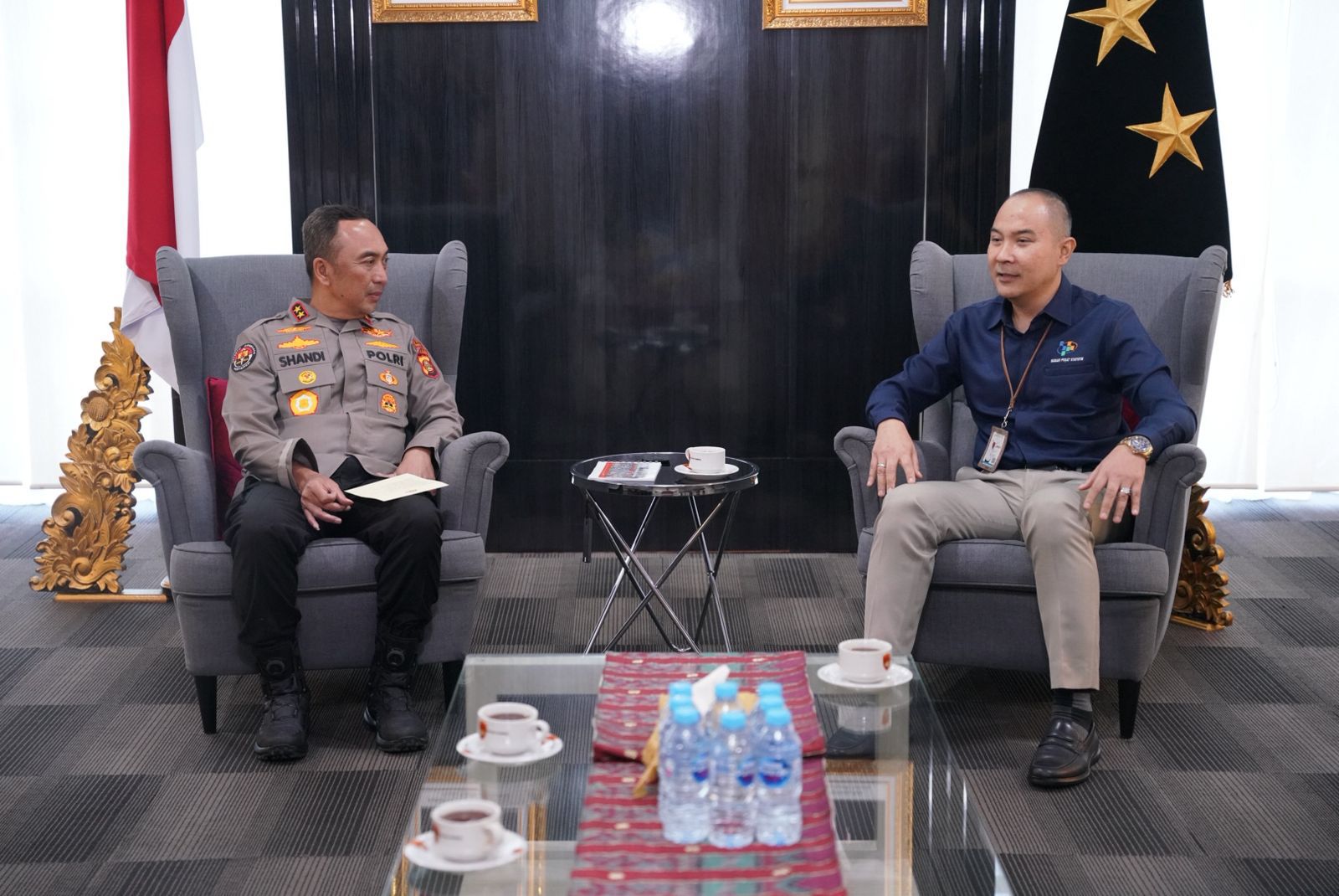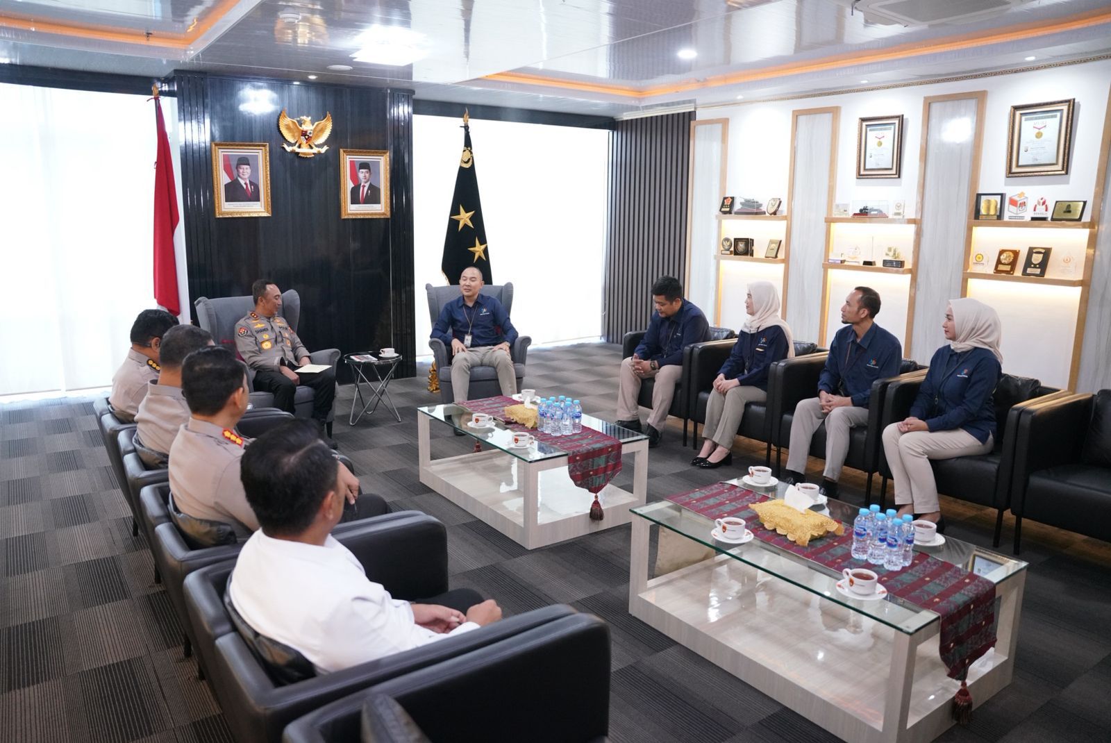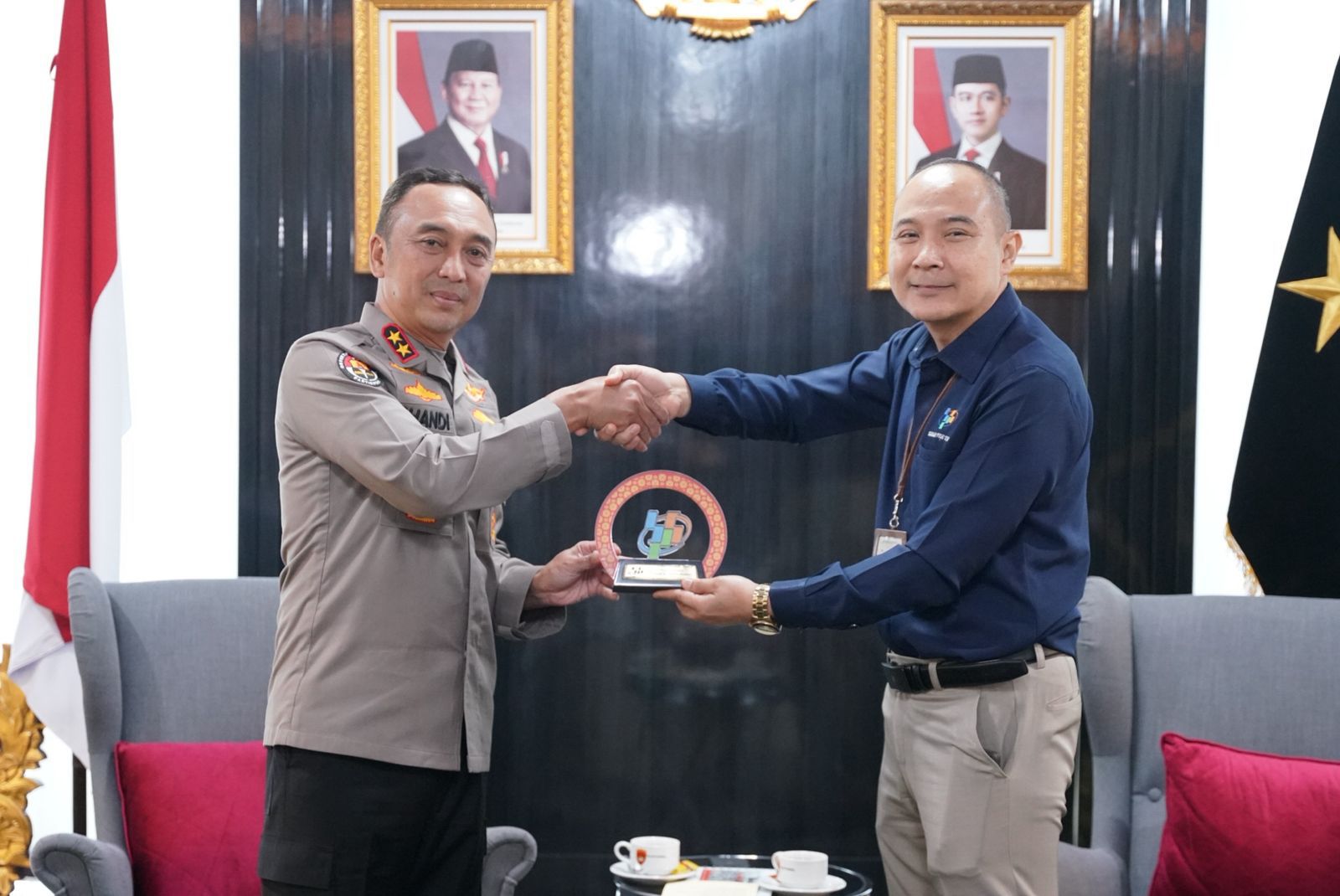 Kapolda Sumatera Selatan Irjen Pol Dr. Sandi Nugroho, S.I.K., S.H., M.Hum. menerima langsung kunjungan kerja Kepala BPS Provinsi Sumatera Selatan beserta jajaran di Ruang Delegasi Lantai 2 Gedung Presisi Mapolda Sumsel, Senin (13/4/2026).