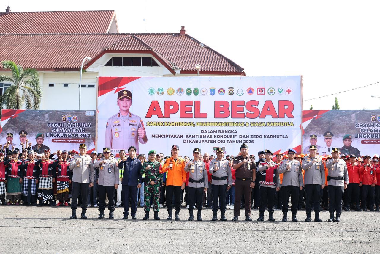 Kapolda Sumsel Pimpin Apel Besar Sabuk Kamtibmas di OKI, Target Zero Karhutla 2026