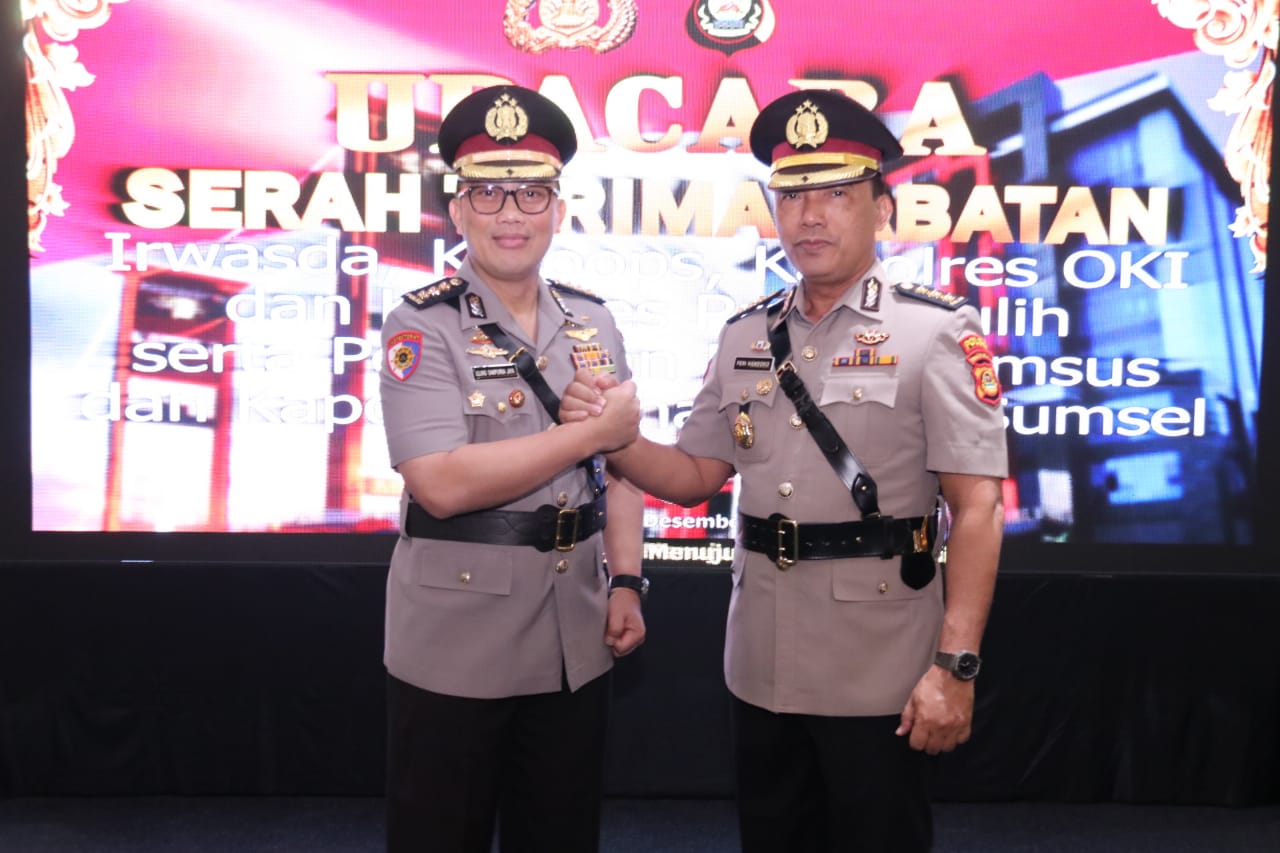 Adapun yang serah terimakan di antaranya, Kombes Agus Suropratomo Oktobrianto, Dirresnarkoba Polda Kepri dimutasi menjadi Dirreskrimsus Polda Sumsel. Posisi Dirreskrimsus Polda Sumsel sendiri sebelumnya sempat kosong setelah ditinggal oleh almarhum Kombes Agung Marlianto yang wafat beberapa waktu lalu.