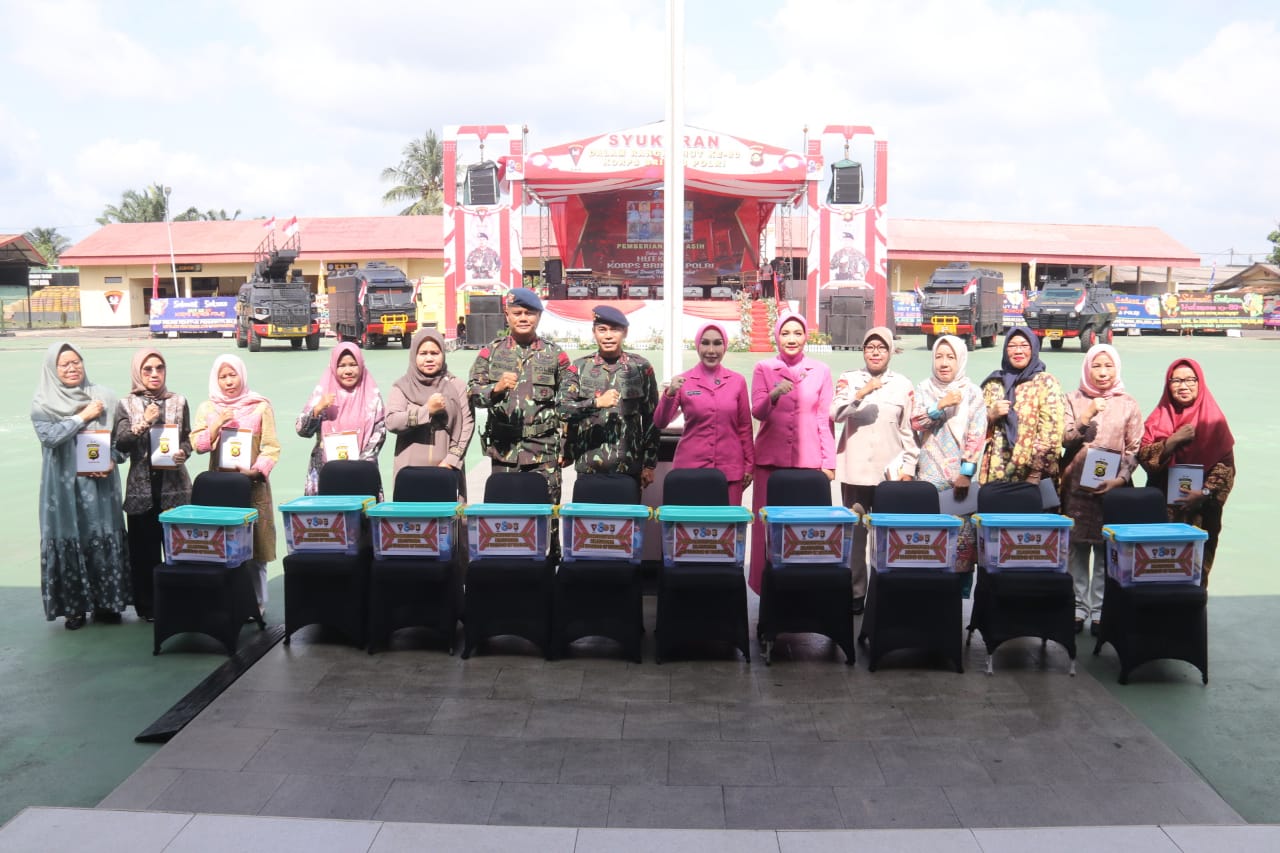 Dansat Brimob Polda Sumsel menyerahkan penghargaan kepada sejumlah personel berprestasi. Selain itu, jajaran Brimob memberikan tali asih sebagai bentuk kepedulian kepada warakawuri.
