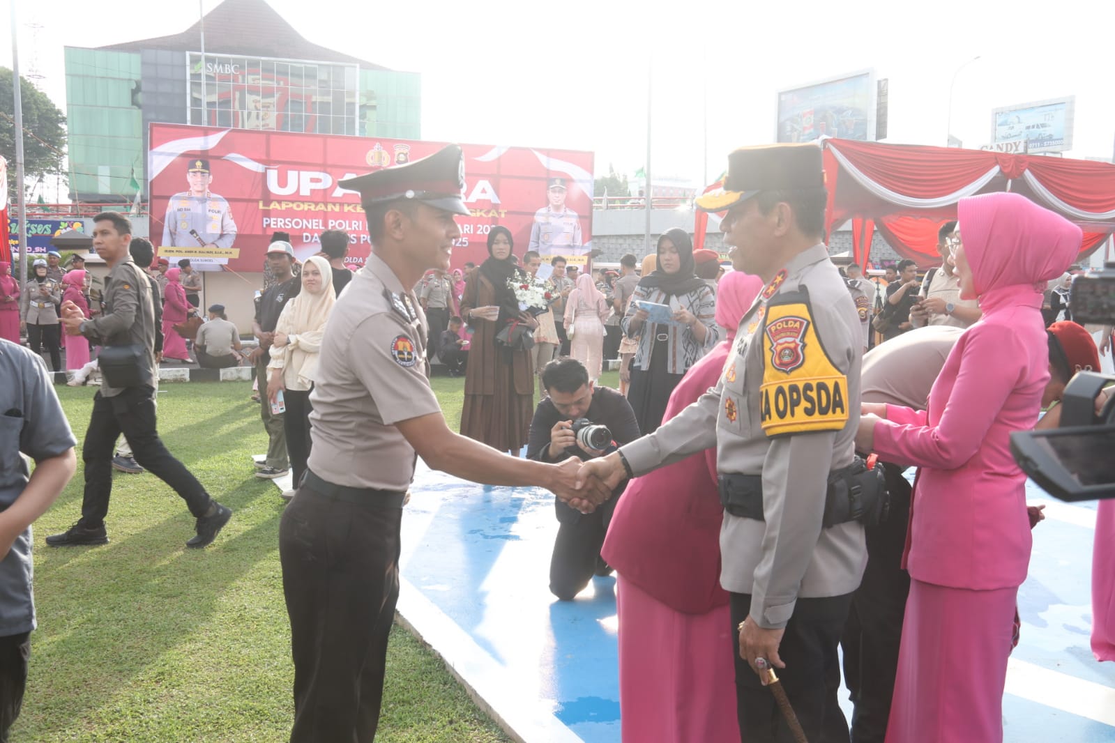Dari jumlah tersebut, 465 personel melaksanakan upacara di Mapolda Sumsel, sementara 1.192.personel lainnya di jajaran Polres,terdiri 197 perwira,974 bintara dan 21 PNS