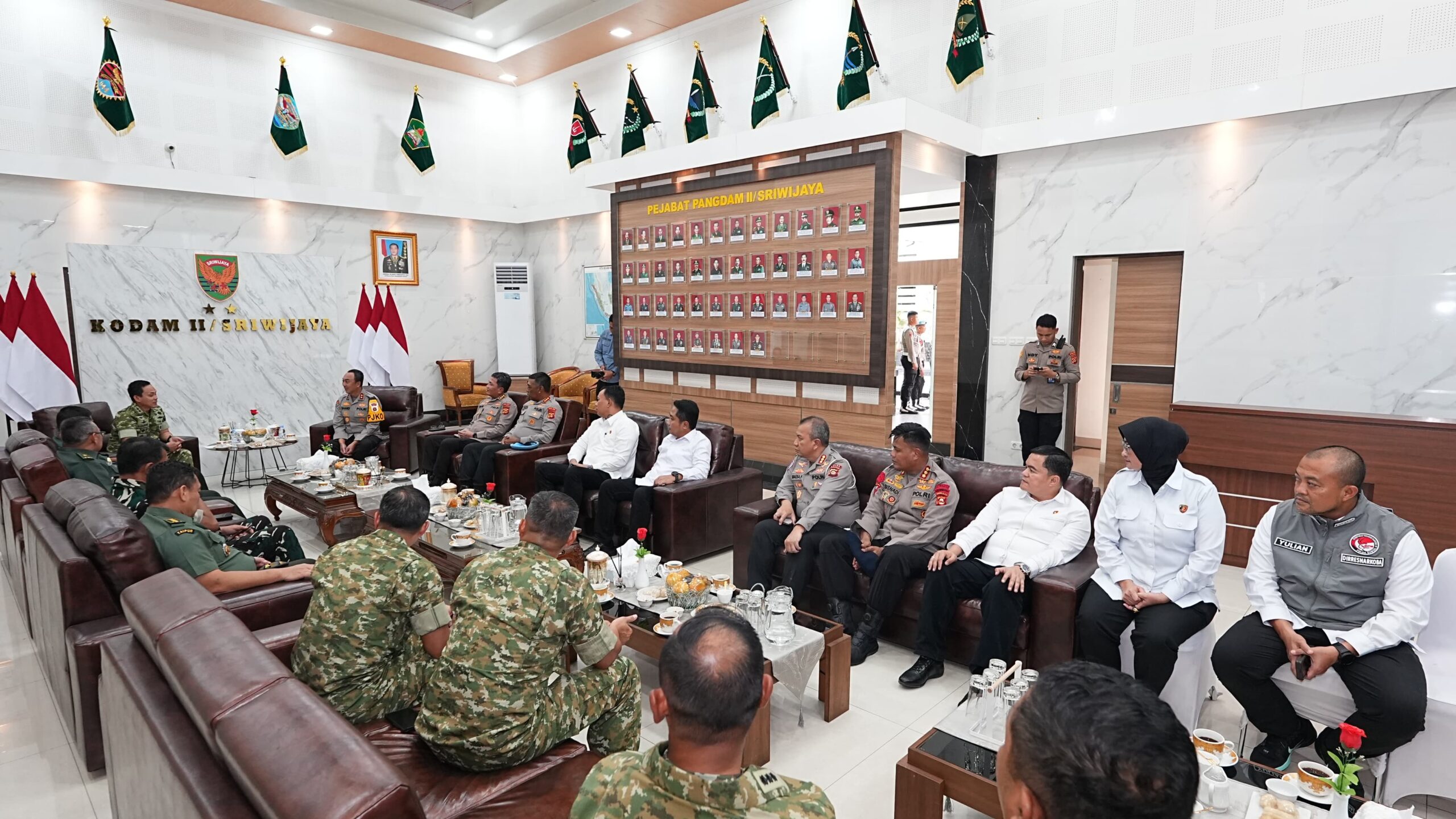 Pangdam II Sriwijaya Mayjen TNI Ujang Darwis turut menegaskan pentingnya kekompakan kedua institusi sebagai pilar utama penjaga stabilitas. Sinergi yang ada diharapkan terus meningkat, terutama dalam pengamanan objek vital nasional, penanggulangan bencana, serta dukungan terhadap agenda strategis pemerintah.