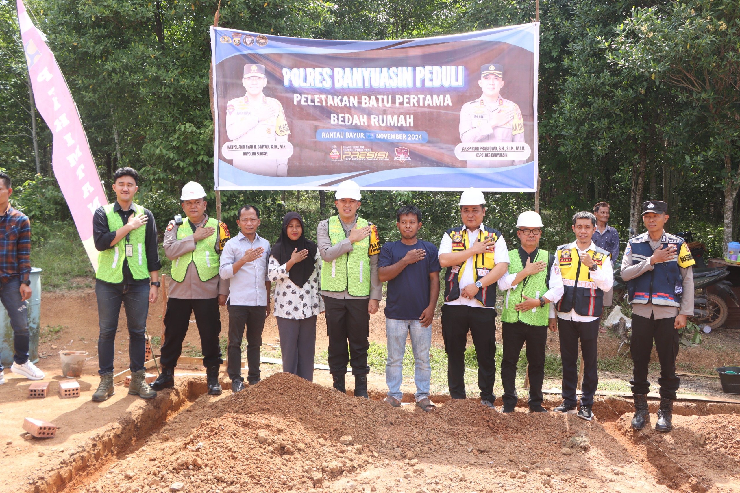 Kapolres Banyuasin Laksanakan Peletakan Batu Pertama Bedah Rumah di Desa Rantau Harapan, Menindaklanjuti Program Kapolda Sumsel