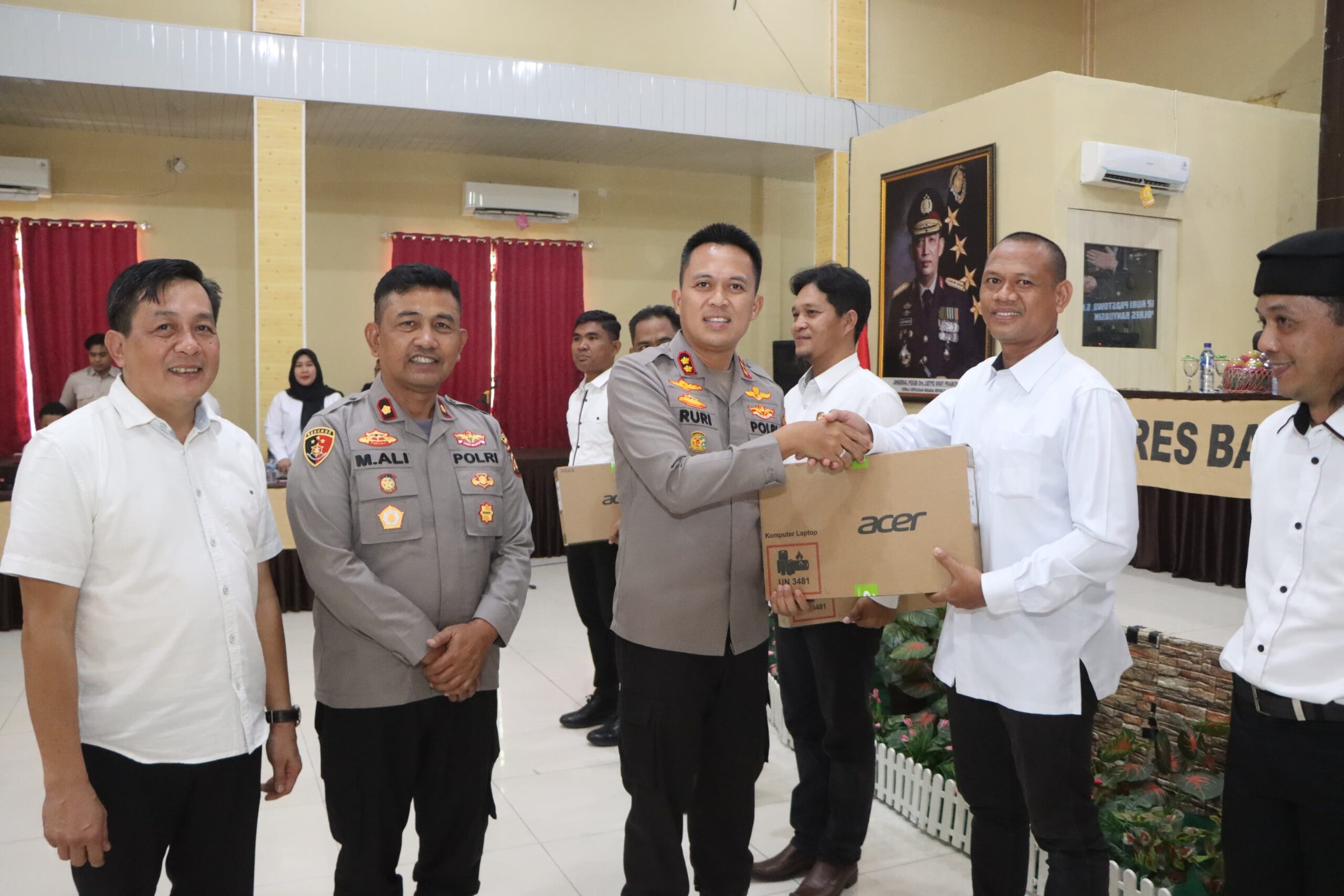 Selanjutnya dalam Rakernis tersebut Kapolres Banyuasin memberikan reward berupa laptop, dan juga pemberian sertifikat penghargaan kepada Kanit Intelkam Polsek Jajaran yang dianggap memiliki dedikasi tinggi dalam memberikan pelayanan publik, dan pelaporan
