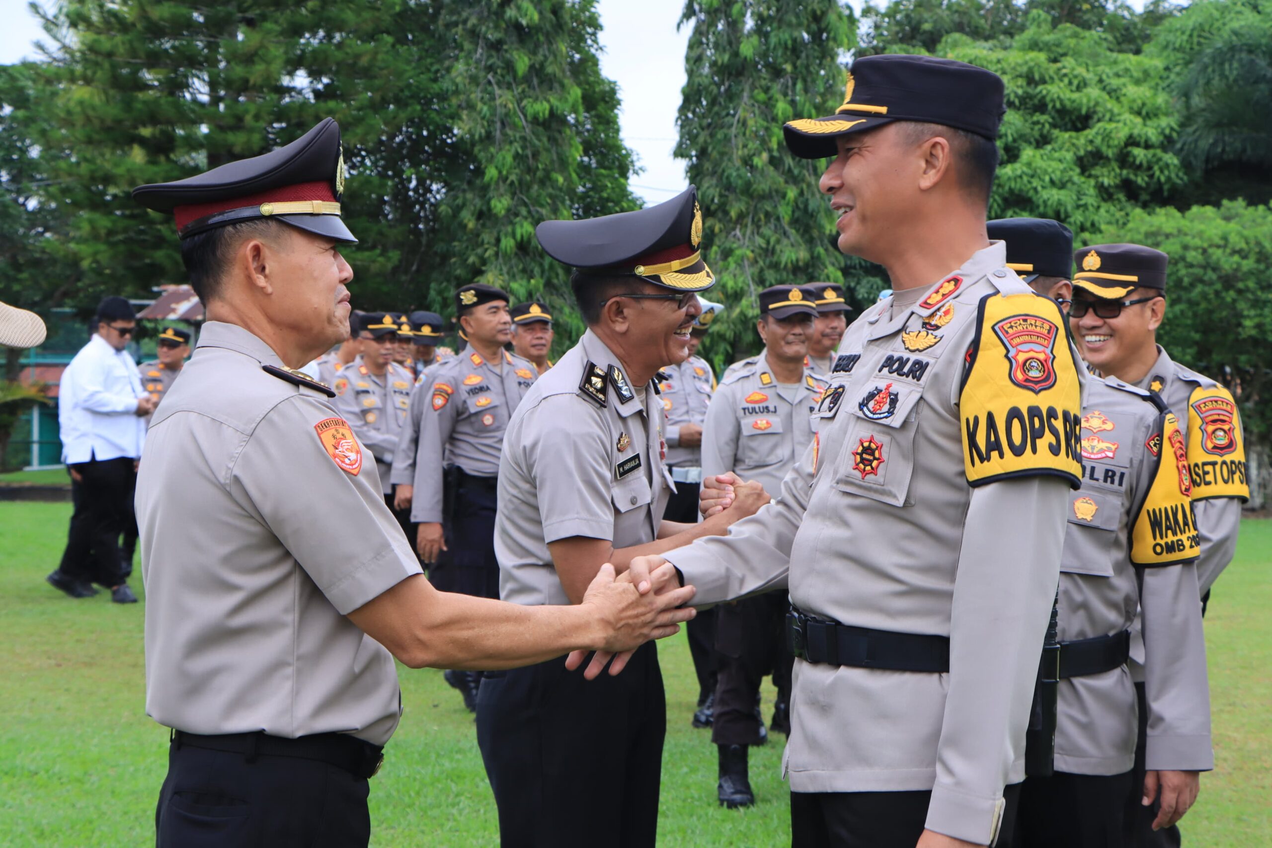 Kapolres dalam kesempatan itu juga mengajak seluruh anggota untuk melaksanakan tugas dengan baik. “Jangan melakukan pelanggaran sekecil apapun, karena jika sudah mempunyai catatan pelanggaran, catatan itu akan selalu mengikuti sampai dengan masa purna tugas dan tidak akan mendapatkan kenaikan pangkat pengabdian,” tegasnya