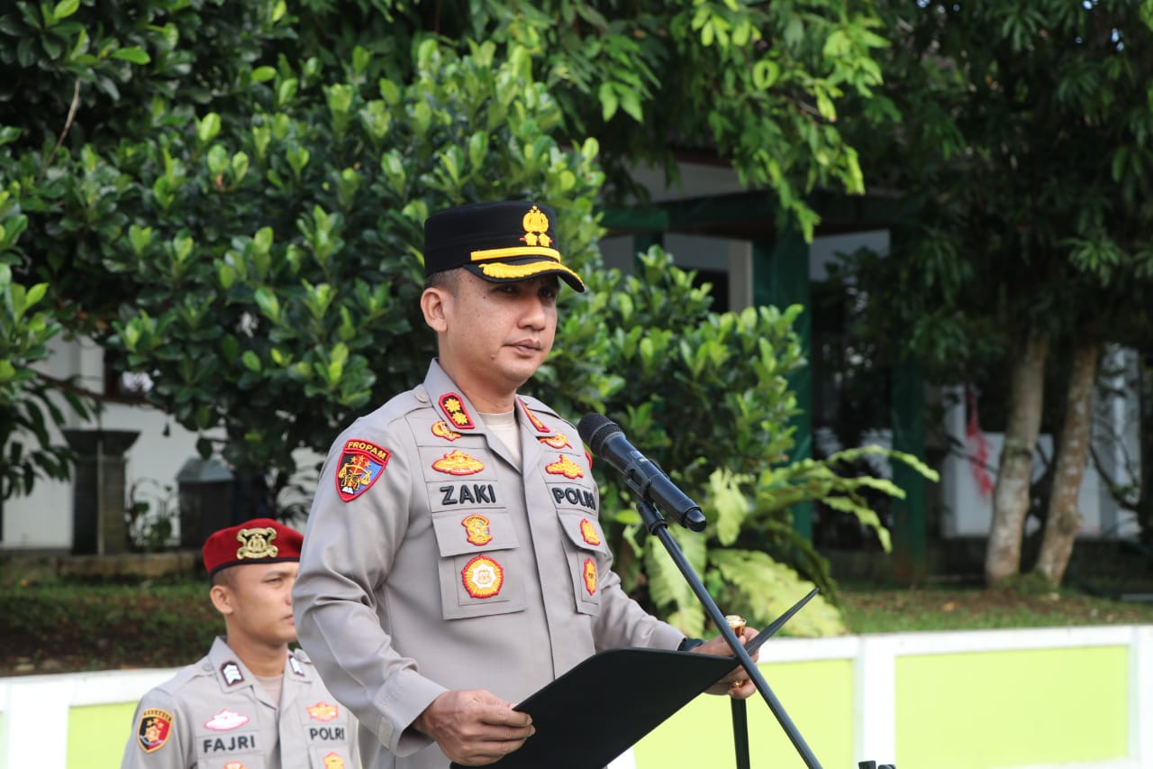 Kapolres Lebak AKBP Herfio Zaki, SIK, MH dalam amanatnya menyampaikan pesan kamtibmas terkait fenomena sosial yang saat ini marak terjadi di berbagai daerah di Indonesia.