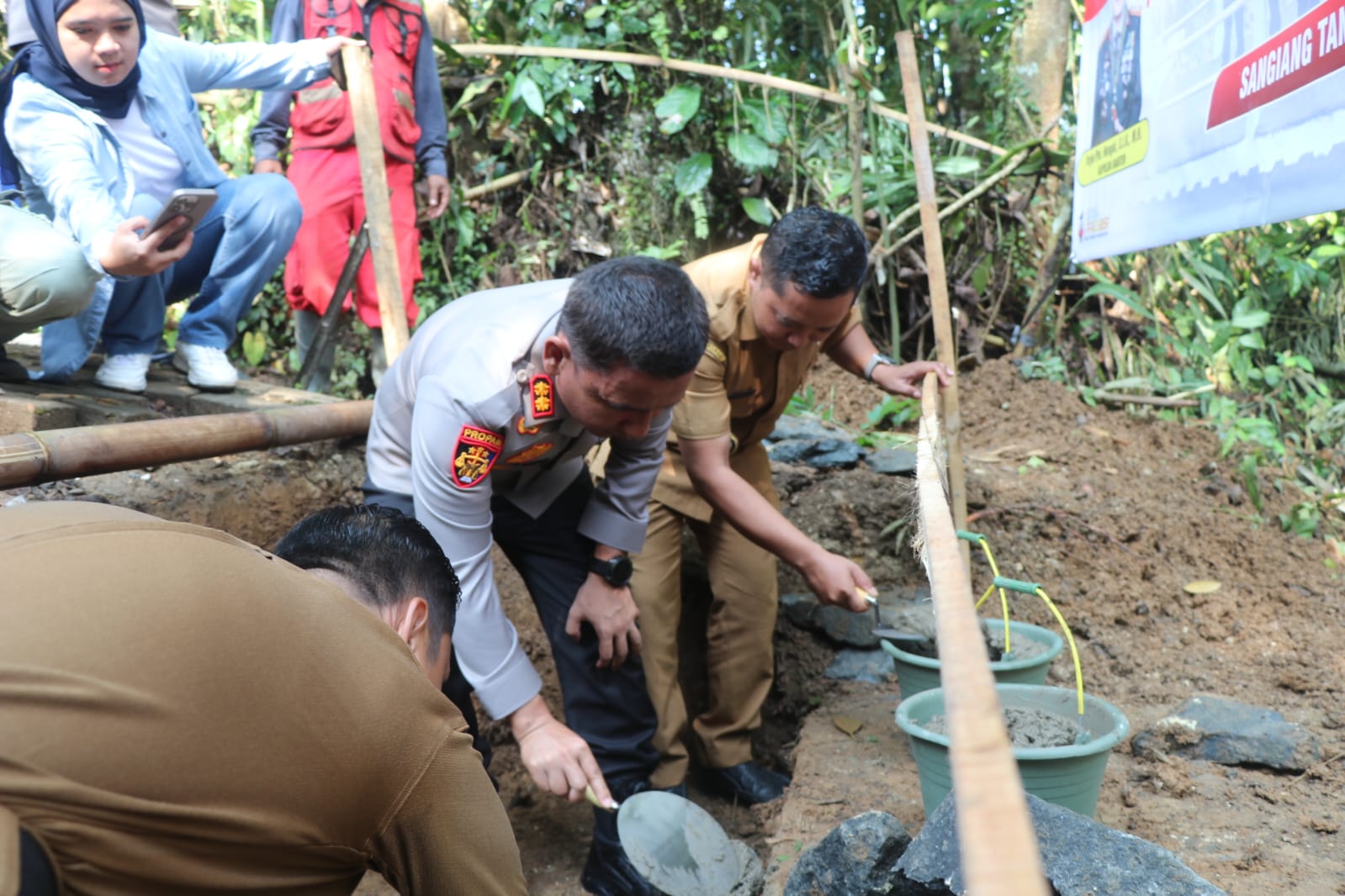 Kapolres Lebak Letakkan Batu Pertama Pembangunan Jembatan Merah Putih di Kp. Cikaduen