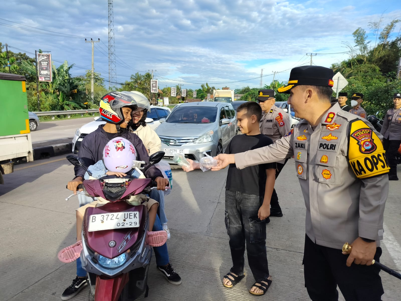 Kapolres Lebak Pantau Arus Mudik dan Bagikan Takjil ke Warga di Pospam Pintu Tol Rangkasbitung