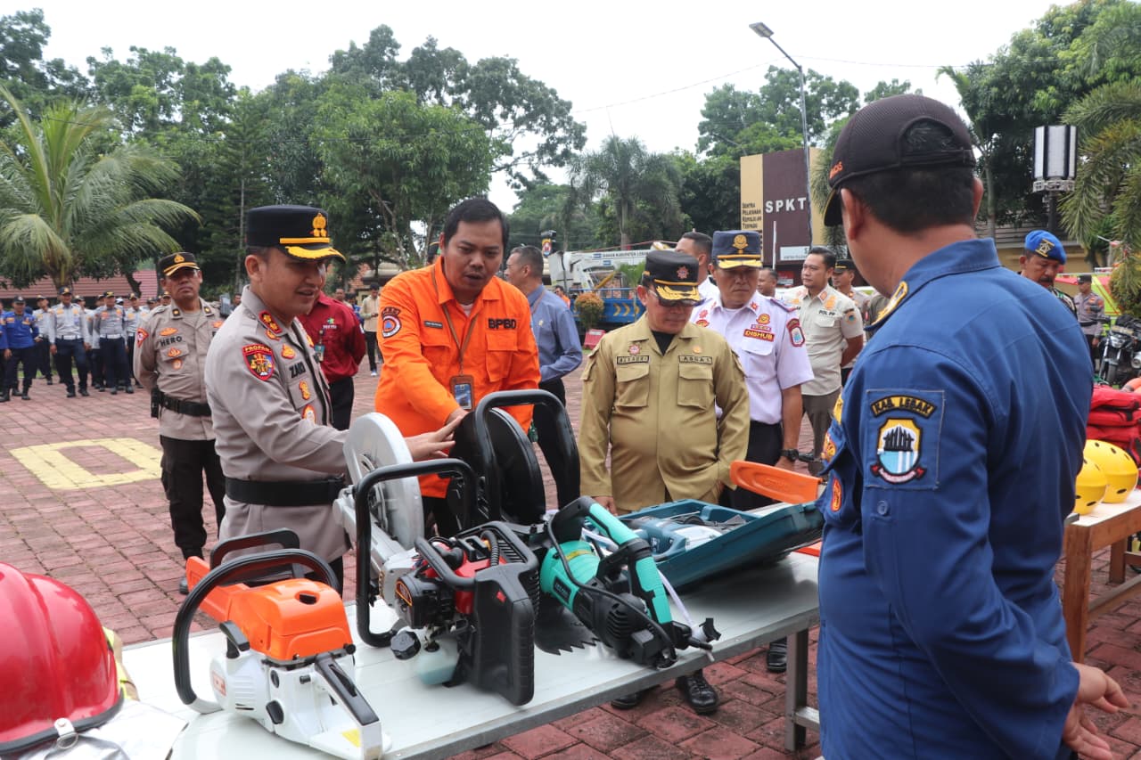 Dalam apel tersebut, dilakukan pengecekan kesiapan personel, kendaraan operasional baik roda dua maupun roda empat, serta berbagai peralatan SAR seperti perahu karet, genset, lampu penerangan, mesin chainsaw, dan ambulans yang akan digunakan dalam penanganan bencana.