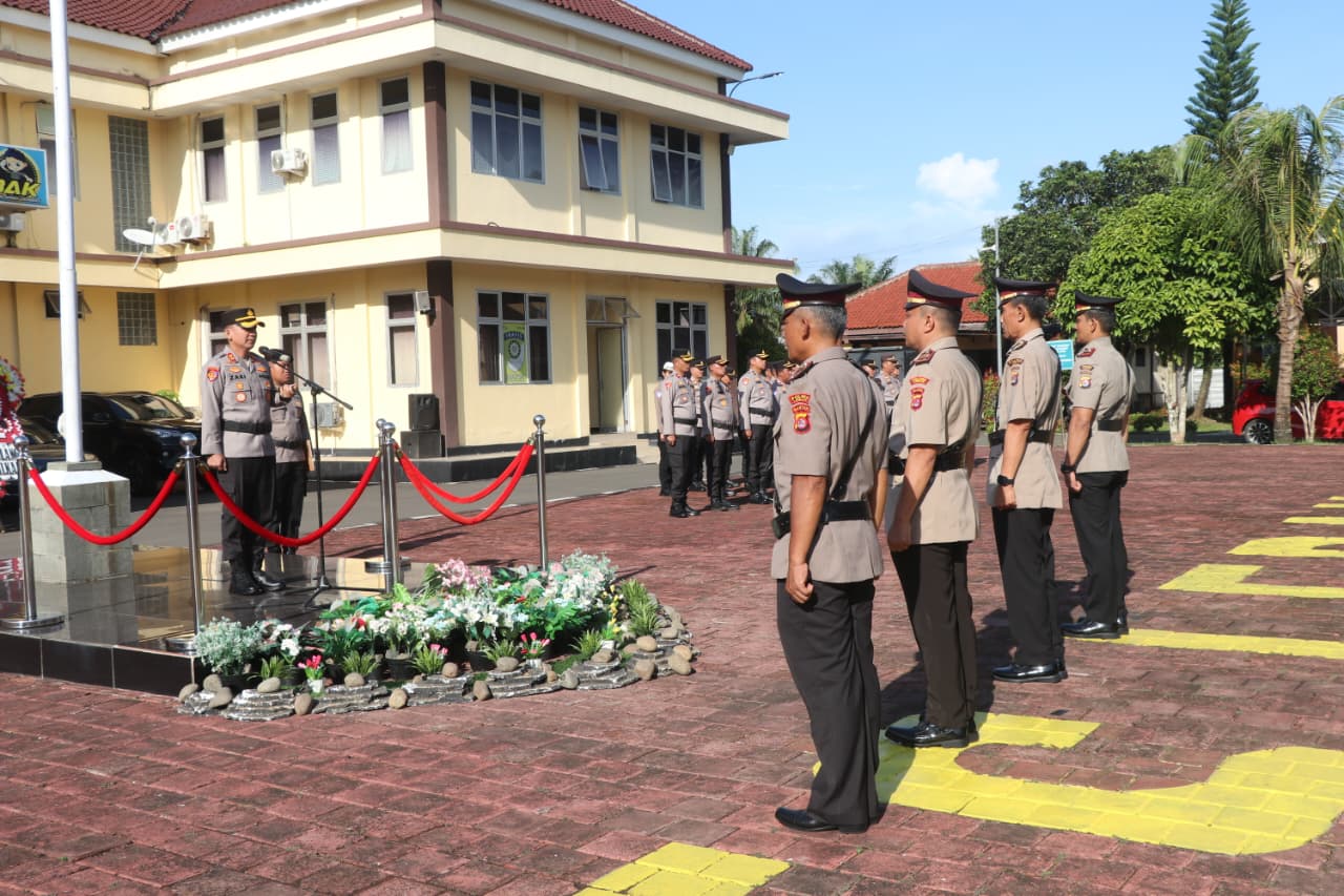 Kapolres Lebak AKBP Herfio Zaki, SIK, MH dalam amanatnya menyampaikan bahwa mutasi jabatan di lingkungan Polri merupakan hal yang wajar sebagai bentuk penyegaran organisasi serta pengembangan karier personel.