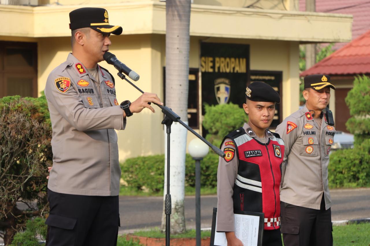 “Saya tidak akan mentoleransi setiap bentuk pelanggaran, baik dalam kedinasan maupun kehidupan pribadi. Semua anggota wajib menjalankan tugasnya sesuai aturan yang berlaku dan tidak mencoreng nama baik Polri,” tegas AKBP Bagus Suryo Wibowo.