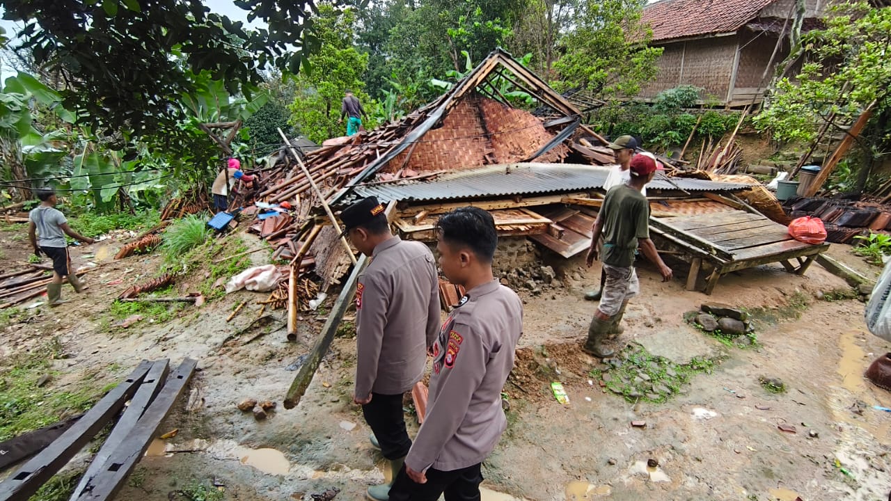 Kapolsek Lebakgedong Polres Lebak Dan Persomil Bergerak Cepat Ke Lokasi Rumah Ambruk di Kampung Padurung