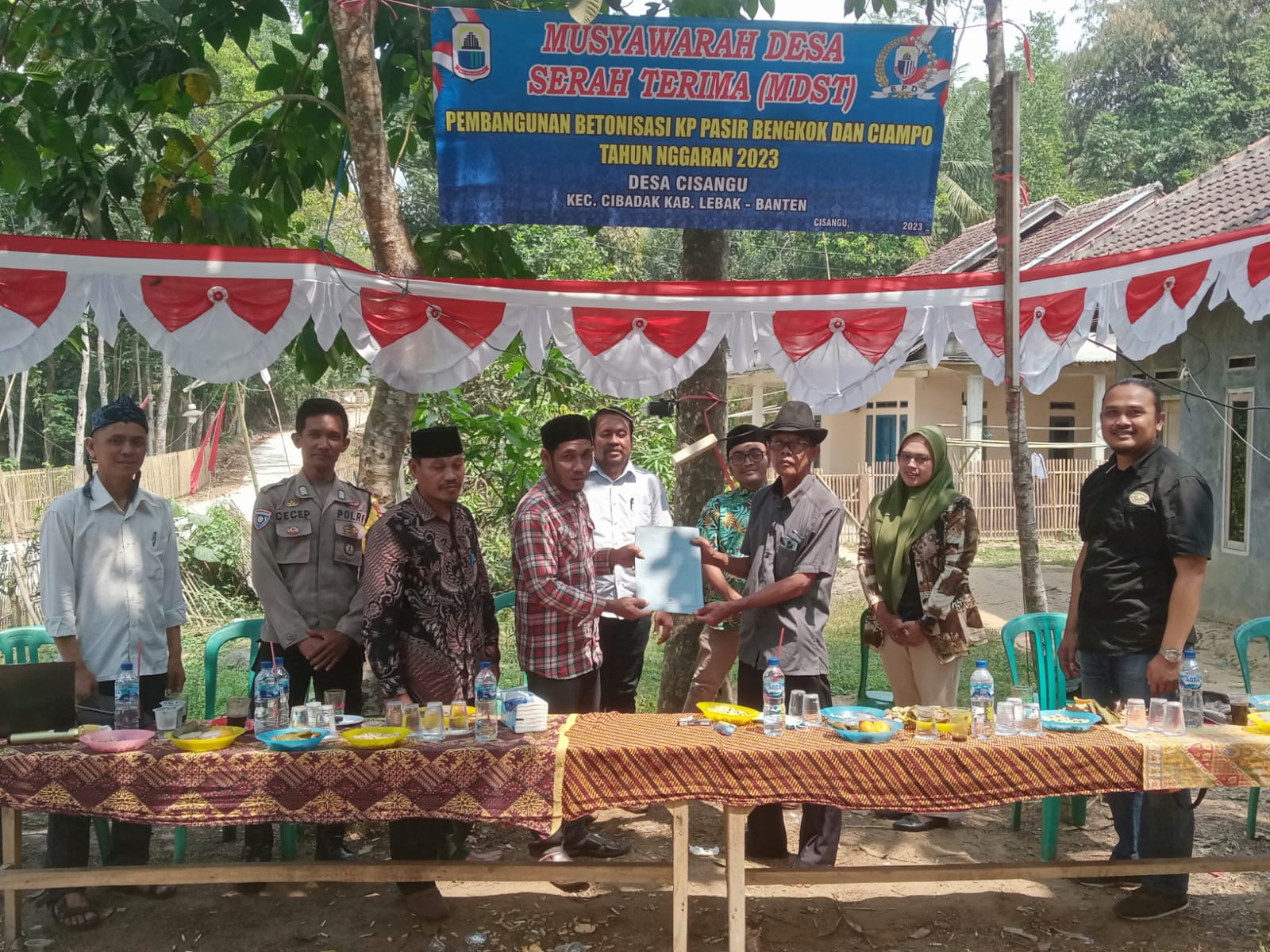 TPK Desa Cisangu sudah melaksanakan dan melaporkan serta menyerahkan, “Pembanguan betonisasi Jalan Pasir Bengkok dan Jalan Ciampo dengan anggaran Rp.400.000.000 dengan panjang 545 meter dan tinggi 15 cm telah kami selesaikan. Maka dari itu mari kita merawat dan menjaganya bersama-sama.” Ujar Jamak.
