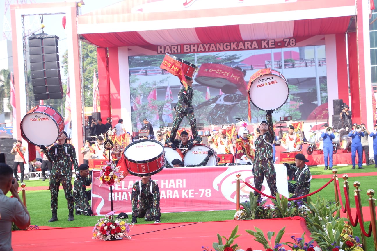 Tasyakuran Polda Sumsel dalam memperingati Hari Bhayangkari ke 78 tahun 2024 ini cukup meriah dibandingkan tahun- tahun sebelumnya. Sebuah panggung hiburan disediakan untuk menghibur tamu undangan, peserta upcara dan masyarakat sekitar Mapolda. Bahkan sebelumnya juga dipukau dengan pertunjukan Marching Band Athira Wira Bakthi.”Tandanya (wulan)