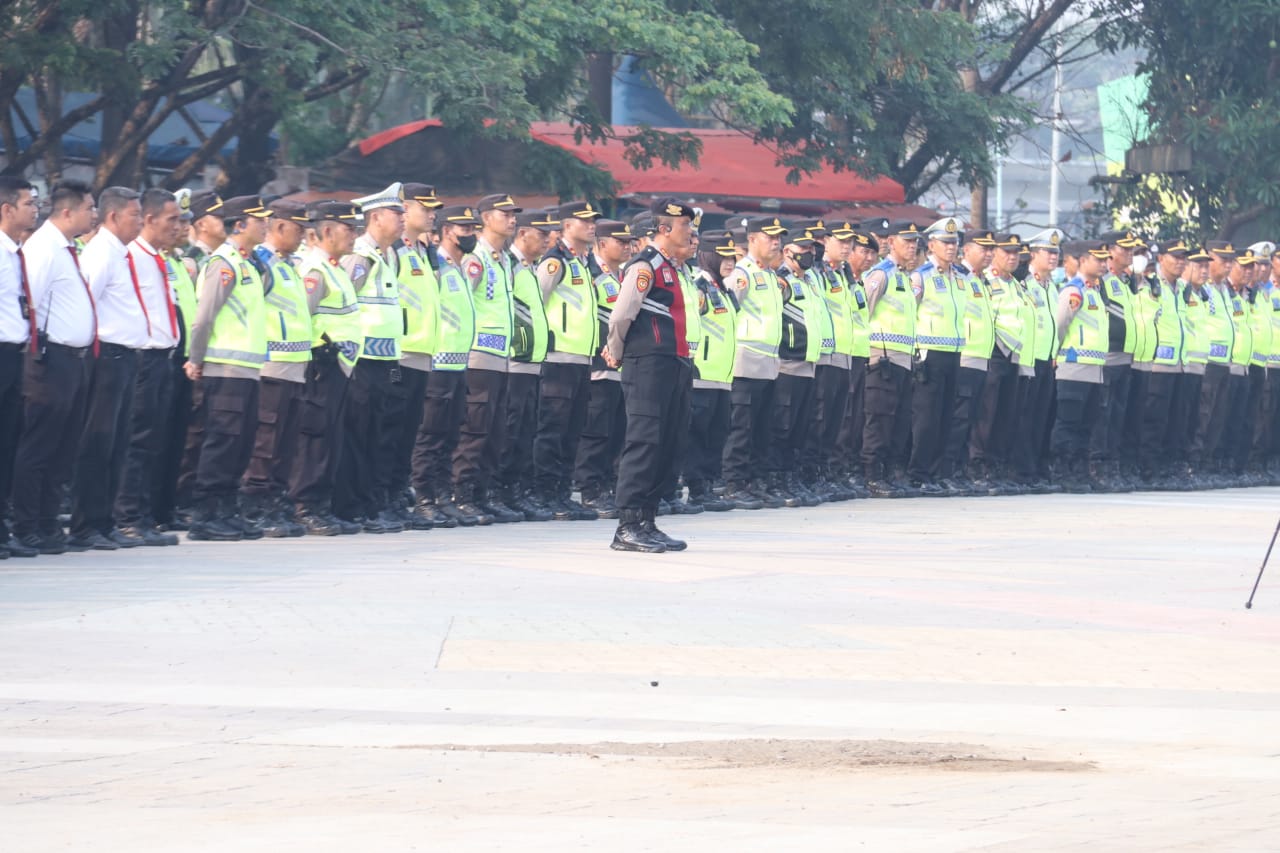 ” Selalu waspada terhadap potensi gangguan harkamtibmas dan perhatikan selalu Kamseltibcarlantas di wilayah kota Palembang dan pusat-pusat keramaian umum,Jangan lupa selalu utamakan keselamatan dalam bertugas dan perlakukan masyarakat secara humanis ” tambahnya.