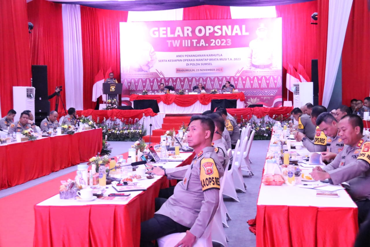 Liputanabn.com | PALEMBANG- Kepolisian Daerah (Polda) Sumatera Selatan (Sumsel) menggelar Opsnal TW III Tahun 2023, yang di ikuti Polres dan Polrestabes jajaran Polda Sumsel, Kamis (23/11/2023).