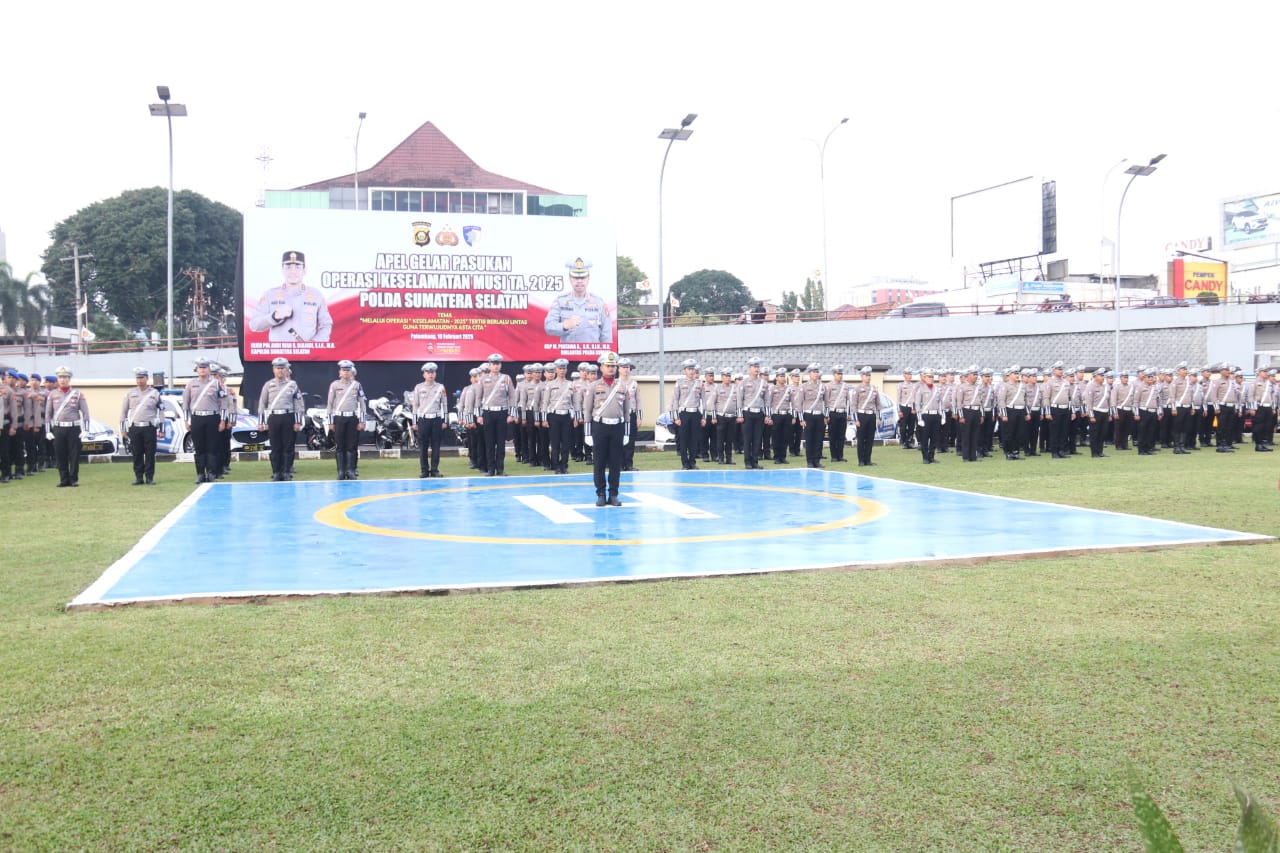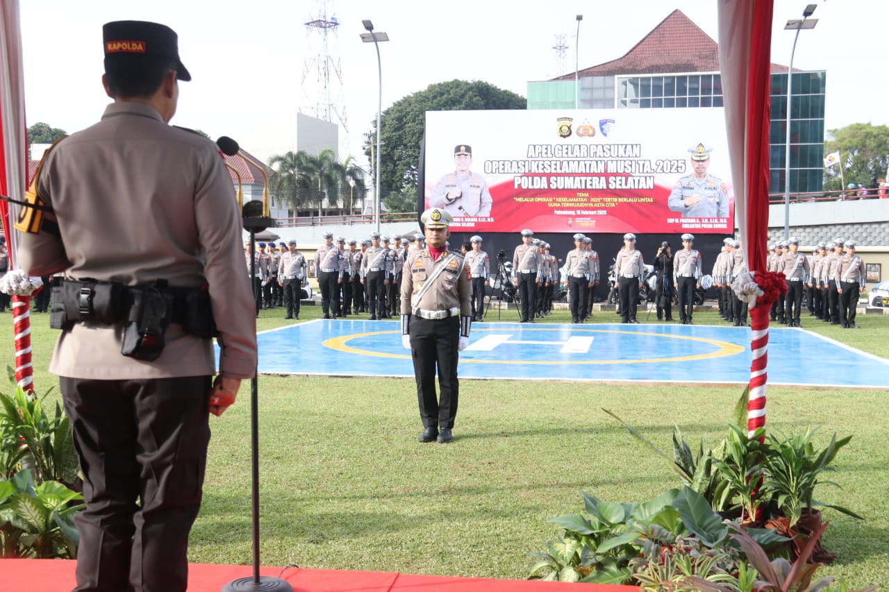 Liputanabn.com | Palembang – Kepolisian Daerah (Polda) Sumatera Selatan (Sumsel) menggelar apel gelar pasukan dalam rangka Operasi Keselamatan Musi T,A 2025, Senin (10/2/2025)pagi. Apel yang dipimpin langsung oleh Kapolda Sumsel Irjen Pol. Andi Rian R Djajadi S.I K., M.H.,ini dihadiri oleh Wakapolda Sumsel Brigjen Pol M,Zulkarnain,SIK,Msi