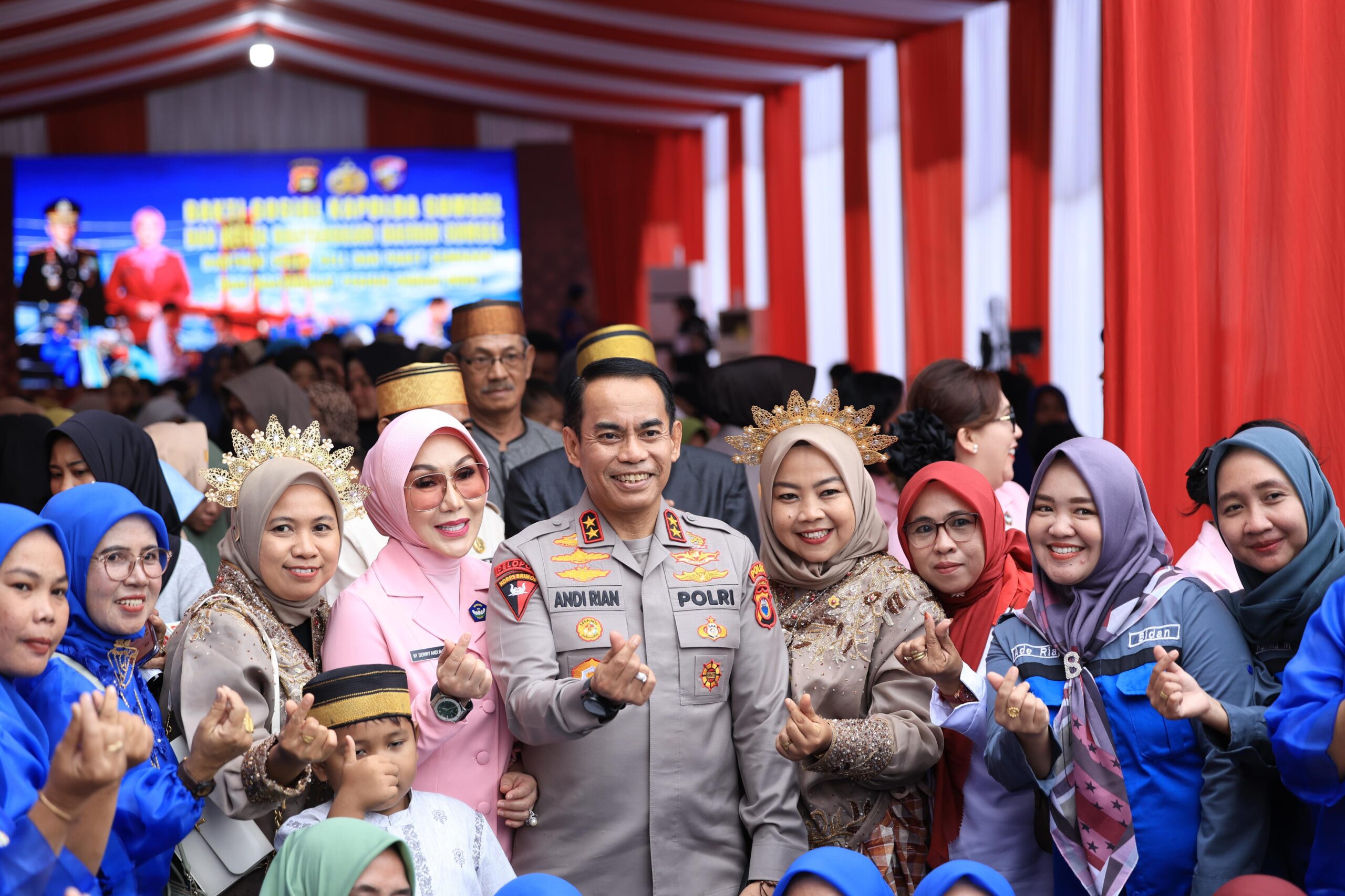 Irjen Andi Rian R Djajadi SIK, MH beserta rombongan yang baru tiba langsung disambut oleh PJ Bupati Banyuasin dan Kapolres Banyuasin serta warga yang sebagian kompak mengenakan pakaian adat Bugis.