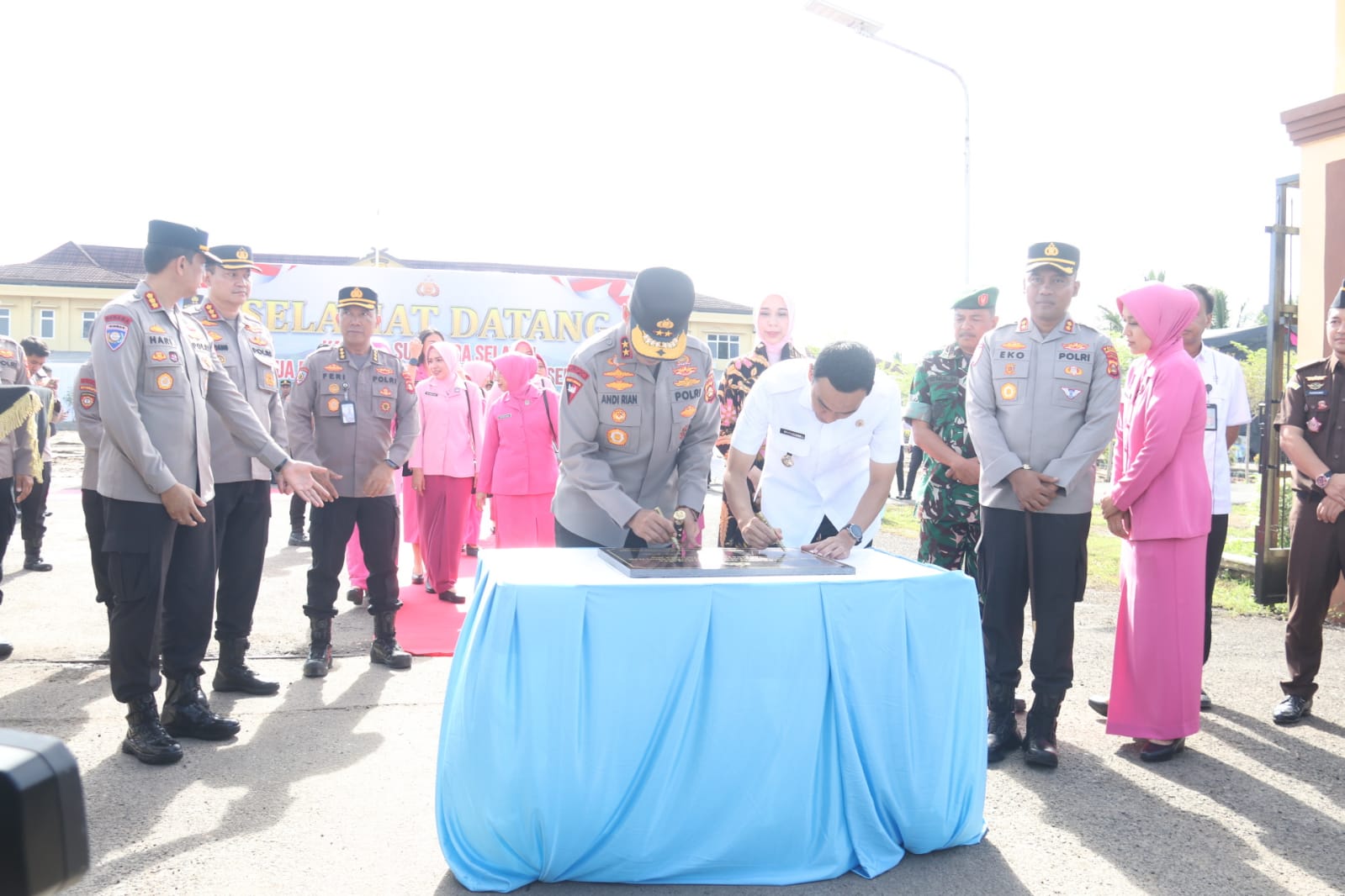 Kabid Humas Polda Kombes Pol Nandang Mu’min Wijaya SIK MH mengatakan Kunjungan kerja ini menjadi momen penting bagi Polres Ogan Komering Ilir dalam memperkuat sinergitas dan arahan langsung dari pimpinan tertinggi Polda Sumsel kegiatan diawali prosesi pengalungan bunga, prosesi jarmat laporan kesatuan dilanjutkan prosesi tarian, prosesi sekapur sirih, penyambutan Forkopimda Kabupaten kabupaten OKI dan PJU Polres OKI beserta isteri dilanjutkan peresmian Bangunan Lapangan upacara dan peresmian Gapura Polres OKI serta penandatanganan peresmian dan Foto bersama