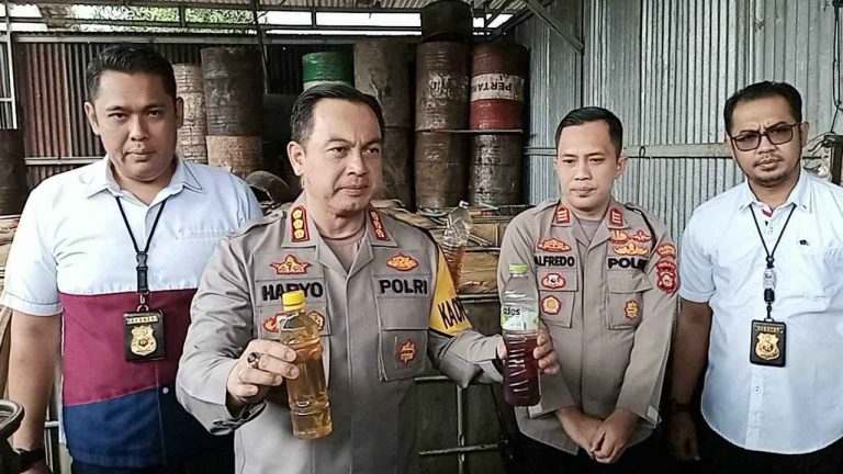 Liputanabn.com | Palembang — Kapolrestabes Palembang, Kombes Pol Haryo Sugihartono SIK, MH, didampingi Kasat Reskrim AKBP Haris Dinzah, SIK, MH, telah berhasil mengamankan gudang tempat penampungan minyak jenis solar hasil Ilegal Drilling, di Jalan Yusuf Singadekane, RT 31, RW 19, Kelurahan Karya Jaya, Kecamatan Kertapati, Palembang, Sumsel.