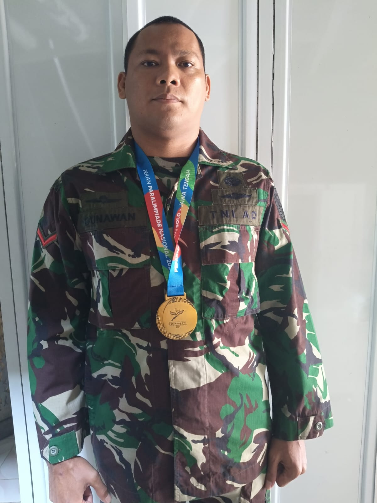 Kopda Gunawan Anggota Kodim 0404/Muara Enim Raih Juara 1 PEKAN PARALIMPIADE NASIONAL 2024 PEPARNAS XVII SOLO JAWA TENGAH