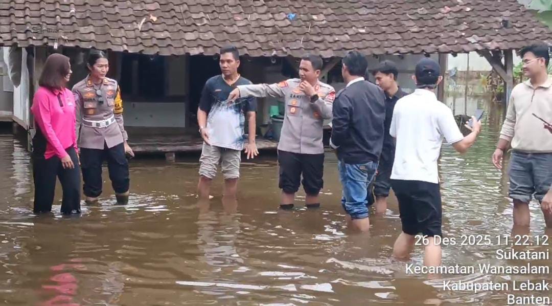 Liputanabn.com | Lebak – Kapolres Lebak, AKBP Herfio Zaki, S.I.K., melakukan kunjungan ke Kampung Genduleun, Desa Sukatani, Kecamatan Wanasalam, Kabupaten Lebak, pada hari jumat 26 desember 2025. Kunjungan ini bertujuan untuk meninjau lokasi banjir yang melanda wilayah tersebut dan menyerahkan bantuan kepada warga terdampak.