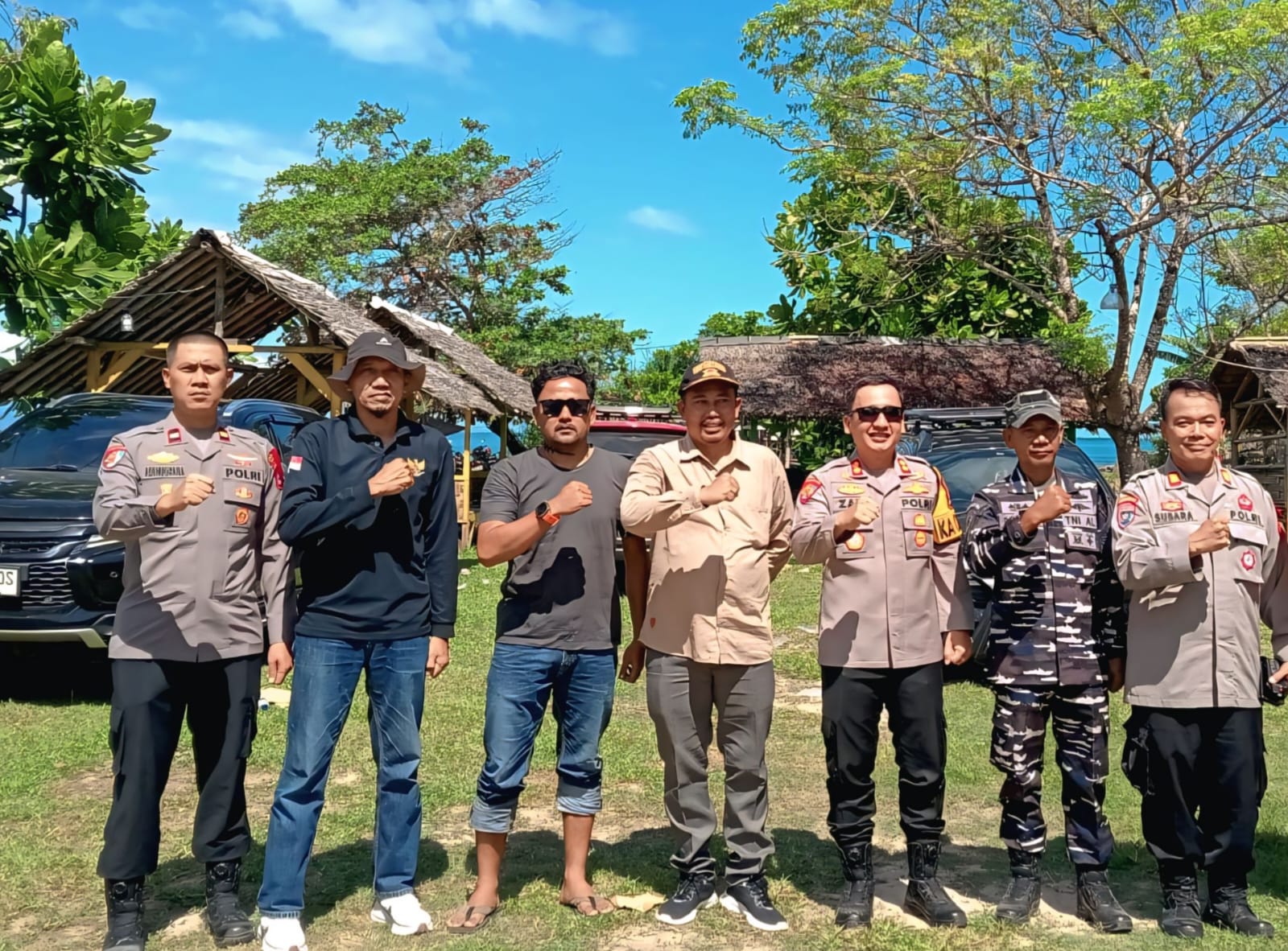 Dalam kesempatan tersebut, hadir pula beberapa tokoh penting dari lingkungan lokal dan institusi keamanan. Camat Wanasalam dan Ketua Karang Taruna Desa Muara Asep Erik Rikardo serta Kepala Desa Muara turut menyambut kedatangan Kapolres Lebak dengan penuh hormat, sementara Kapolsek Wanasalam memberikan penjelasan terkait kondisi keamanan dan potensi yang dimiliki oleh kawasan pantai tersebut. Selain itu, perwakilan dari TNI Angkatan Laut juga turut berpartisipasi dalam kunjungan ini, menunjukkan sinergi yang erat antara TNI dan Polri dalam menjaga ketertiban serta keamanan wilayah pesisir.