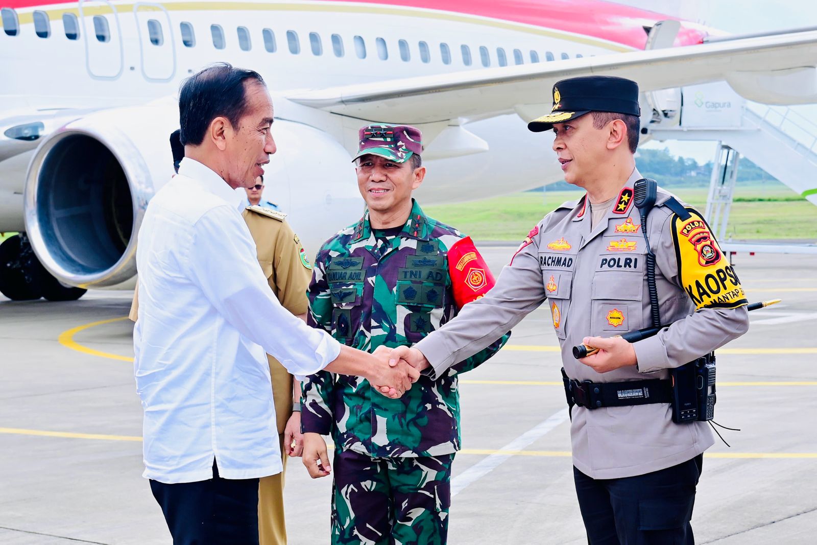 Pada kunjungan tersebut, Kapolri Jenderal Listyo Sigit Prabowo bersama Kabareskrim Komjen Wahyu Widada dan Asrena Kapolri Irjen Wahyu Hadiningrat turut menyambut kedatangan Presiden Joko Widodo beserta rombongan.