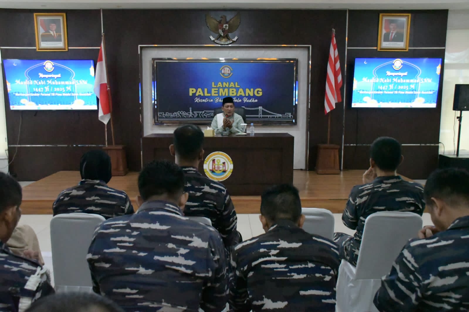 Liputanabn.com | Palembang – Pangkalan TNI Angkatan Laut (Lanal) Palembang mengadakan acara peringatan Maulid Nabi Muhammad SAW 1447 H / 2025 M di Mako Lanal Palembang.