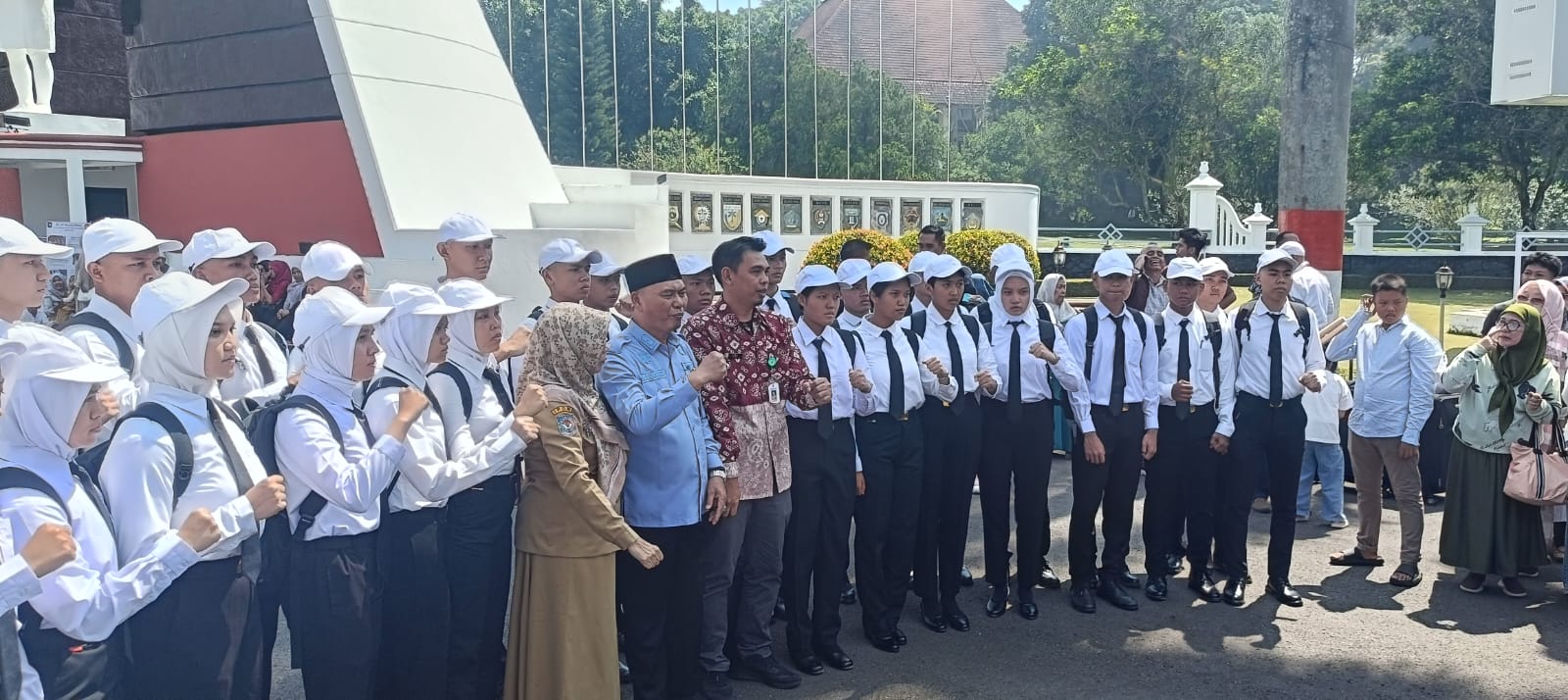 Setelah dipastikan lengkap, Plt . Asisten Pemerintahan dan Kesra Provinsi Sumsel , Dr.Drs Sunarto,MSi menghantarkan putra putri terbaik Sumsel ini ke gerbang IPDN Jatinangor dengan Semboyan ” Bhineka Nara Eka Bhakti”yang berarti “Walaupun berbeda-beda, tetap satu Pengabdian”yang mencerminkan tujuan luhur IPDN dalam menciptakan birokrat yang berkompeten dan memiliki semangat pengabdian terhadap negara ,dengan hangat dan penuh motivasi