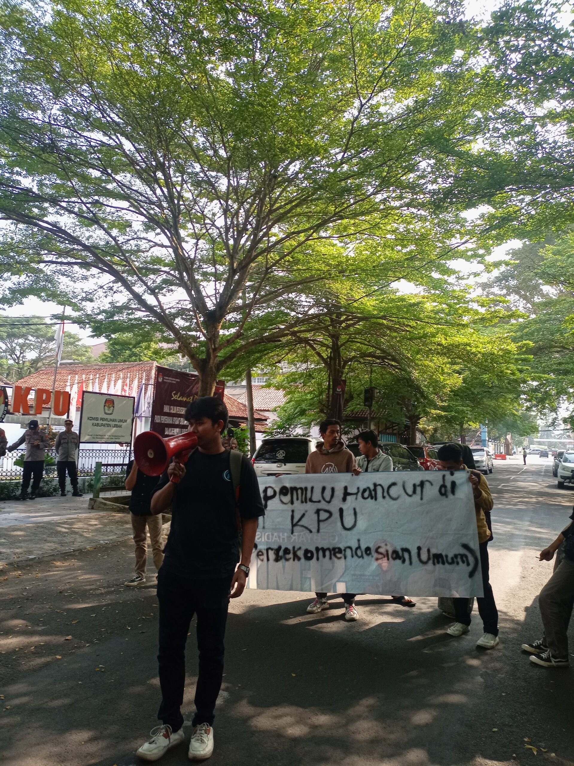 Korlap aksi, Indra Maulana mengatakan bahwa aksi tersebut dilakukan guna meminta keterangan Komisioner KPU mengenai beberapa hal yang berkaitan dengan dugaan adanya surat rekomendasi yang di kirim oleh pimpinan DPRD Kab. Lebak mengenai proses penerimaan calon anggota PPK di Kab. Lebak