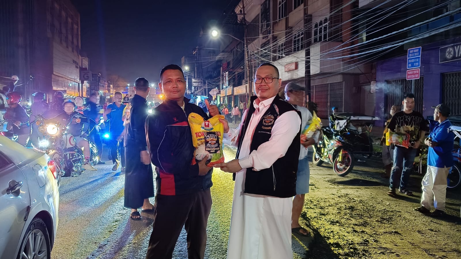“Gak nyangka aja Mas, malam-malam begini saya justru dapat bantuan beras dari komunitas Harley. Saya sangat berterima kasih buat HDCI Palembang, paket ini sangat berarti buat keluarga saya di rumah,” ujar Ridwan dengan mata berkaca-kaca.